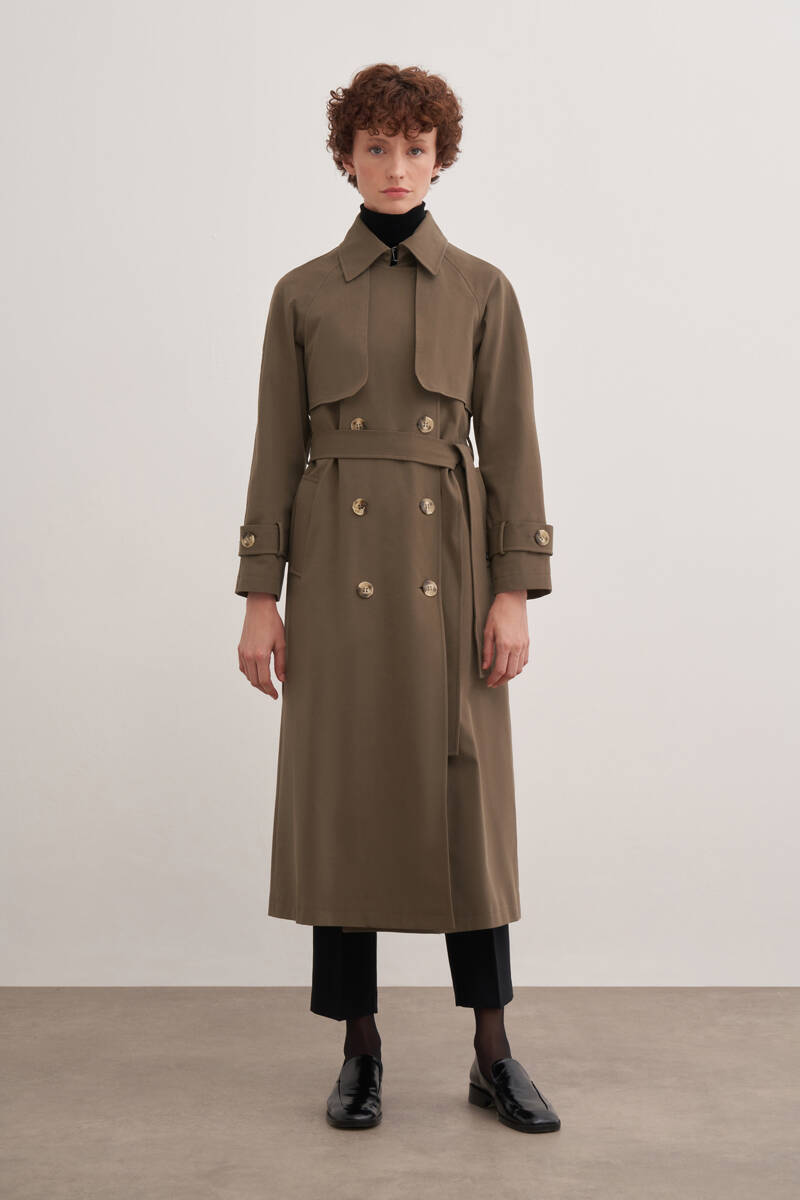 Haki Çift Rüzgarlıklı Kruvaze Trençkot