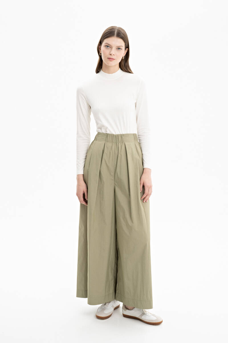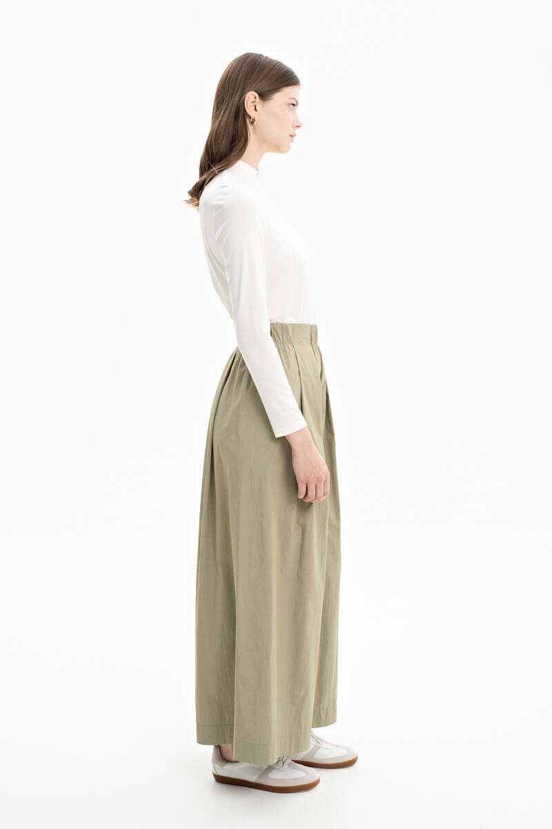 Haki Beli Lastikli Paraşüt Kumaş Pantolon Etek
