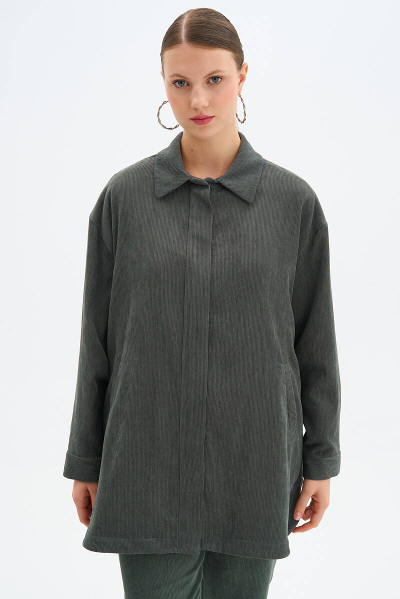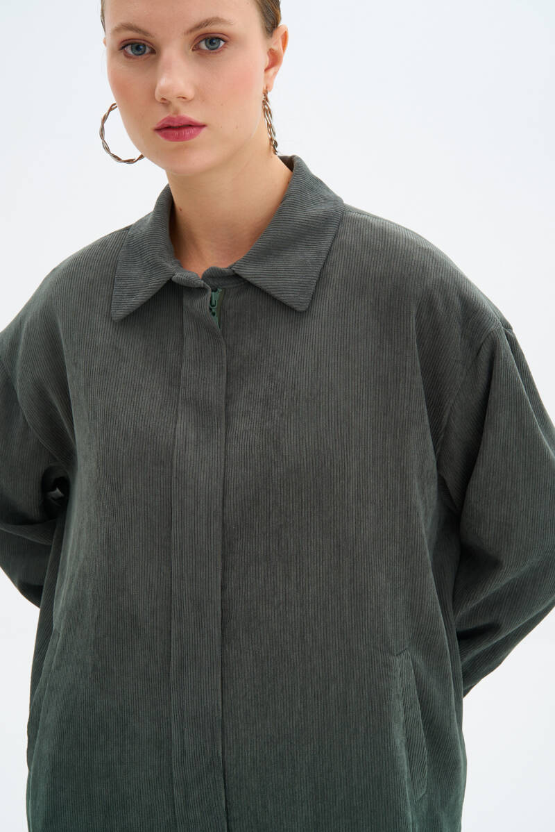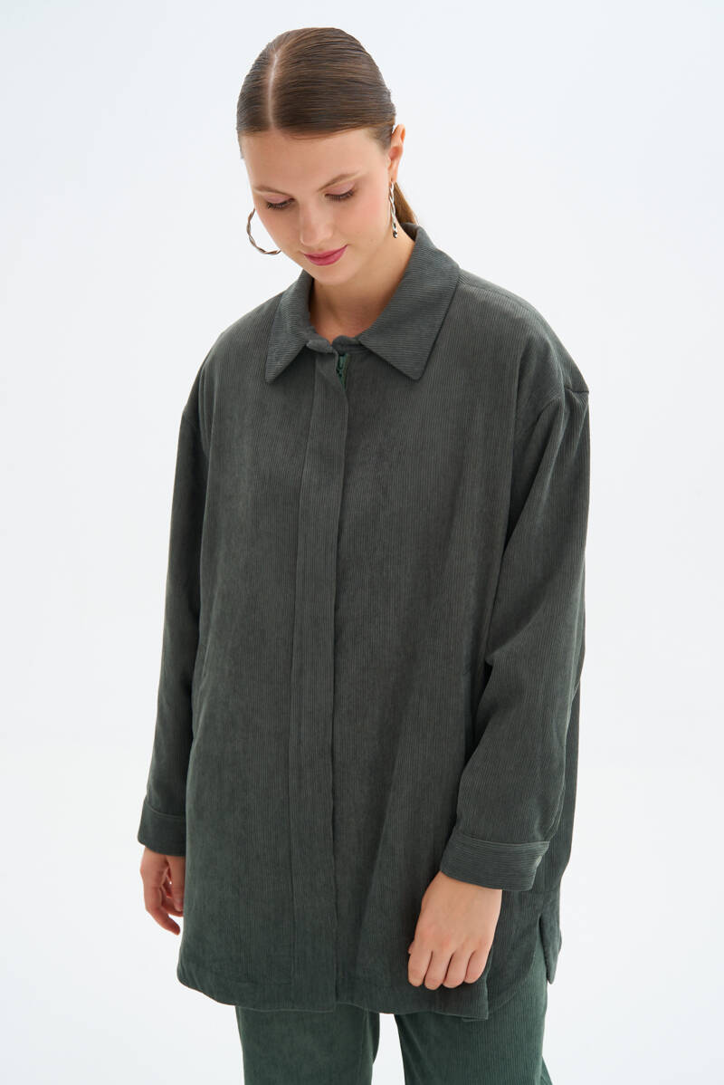 Haki Fermuarlı Ceket