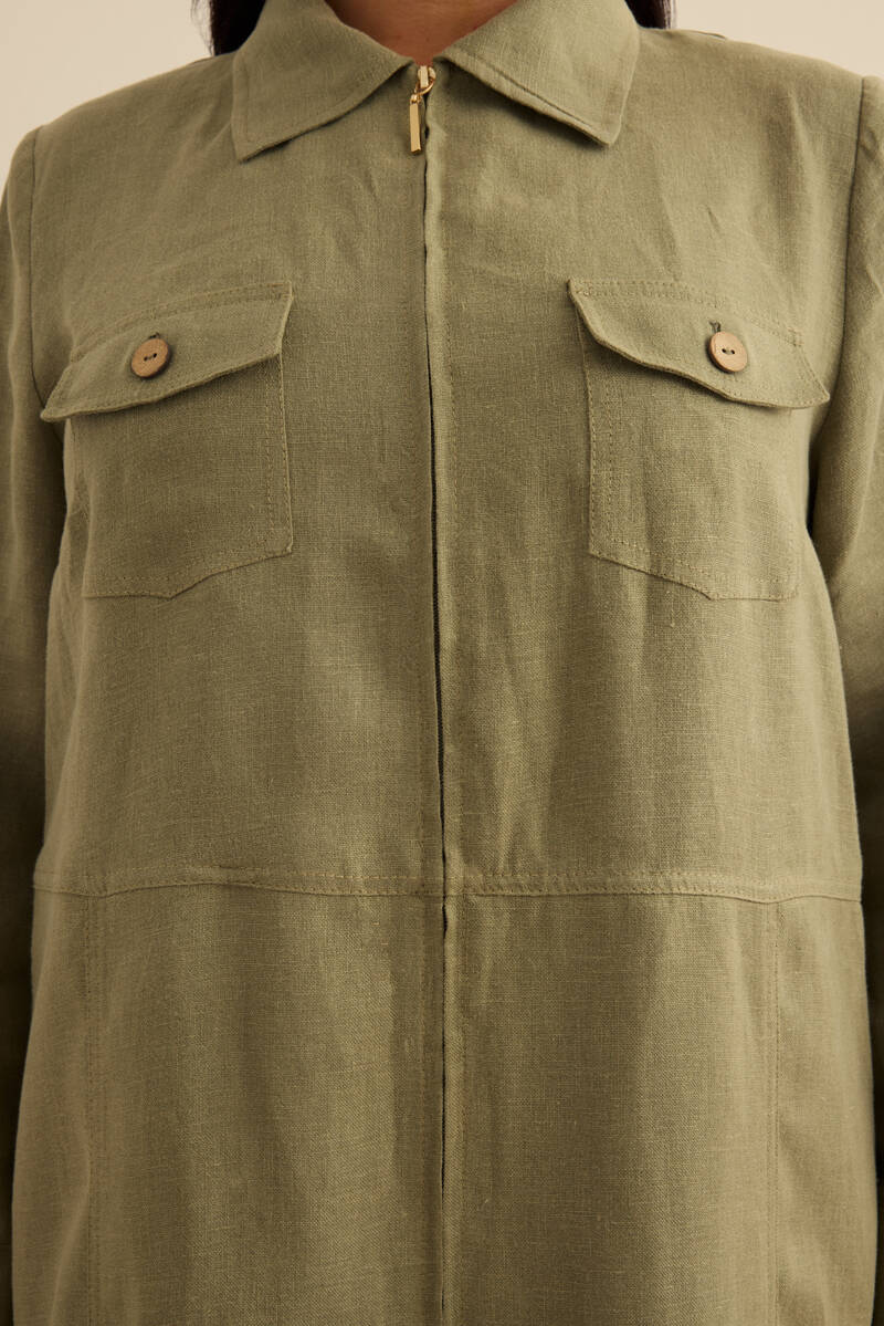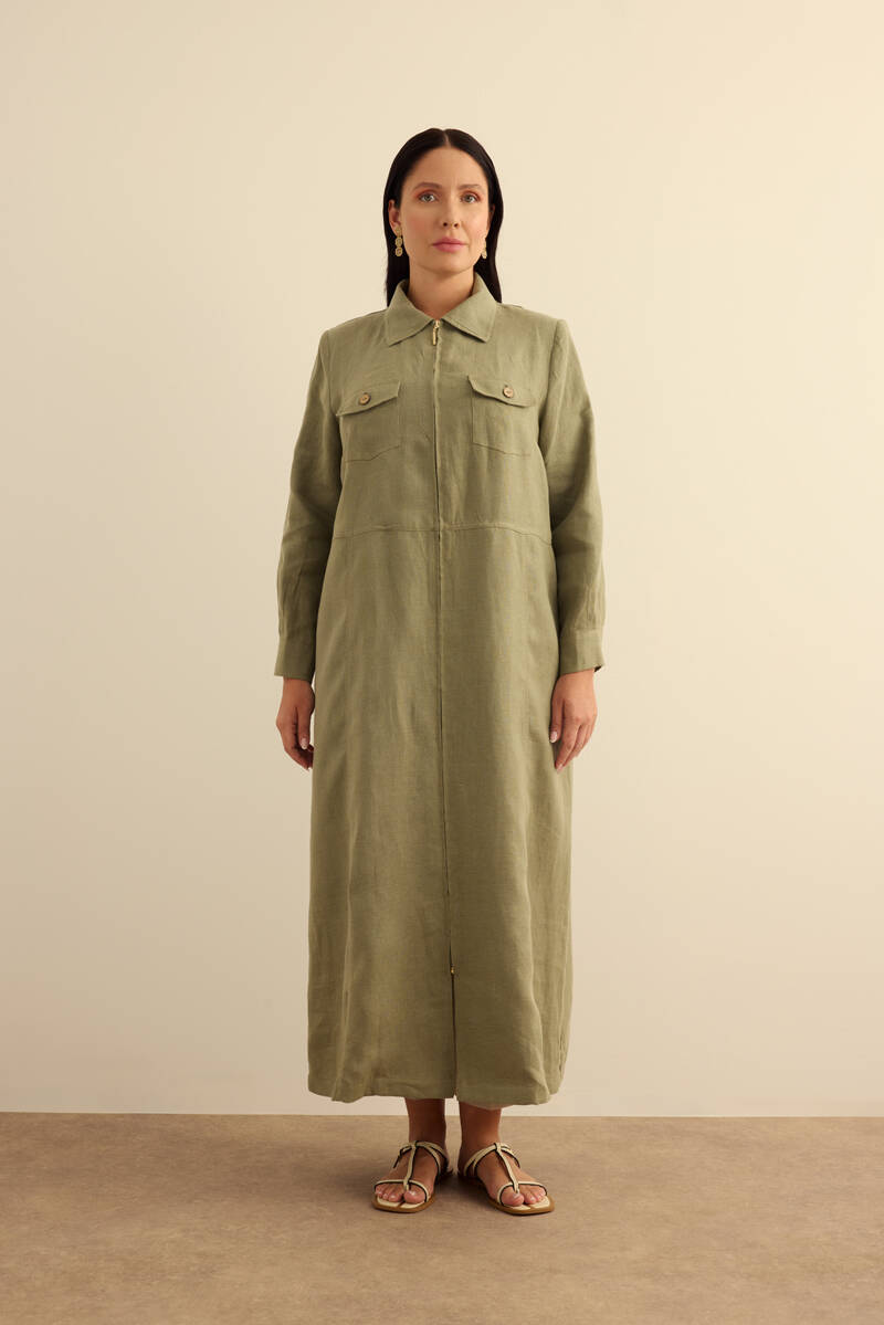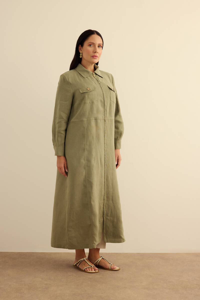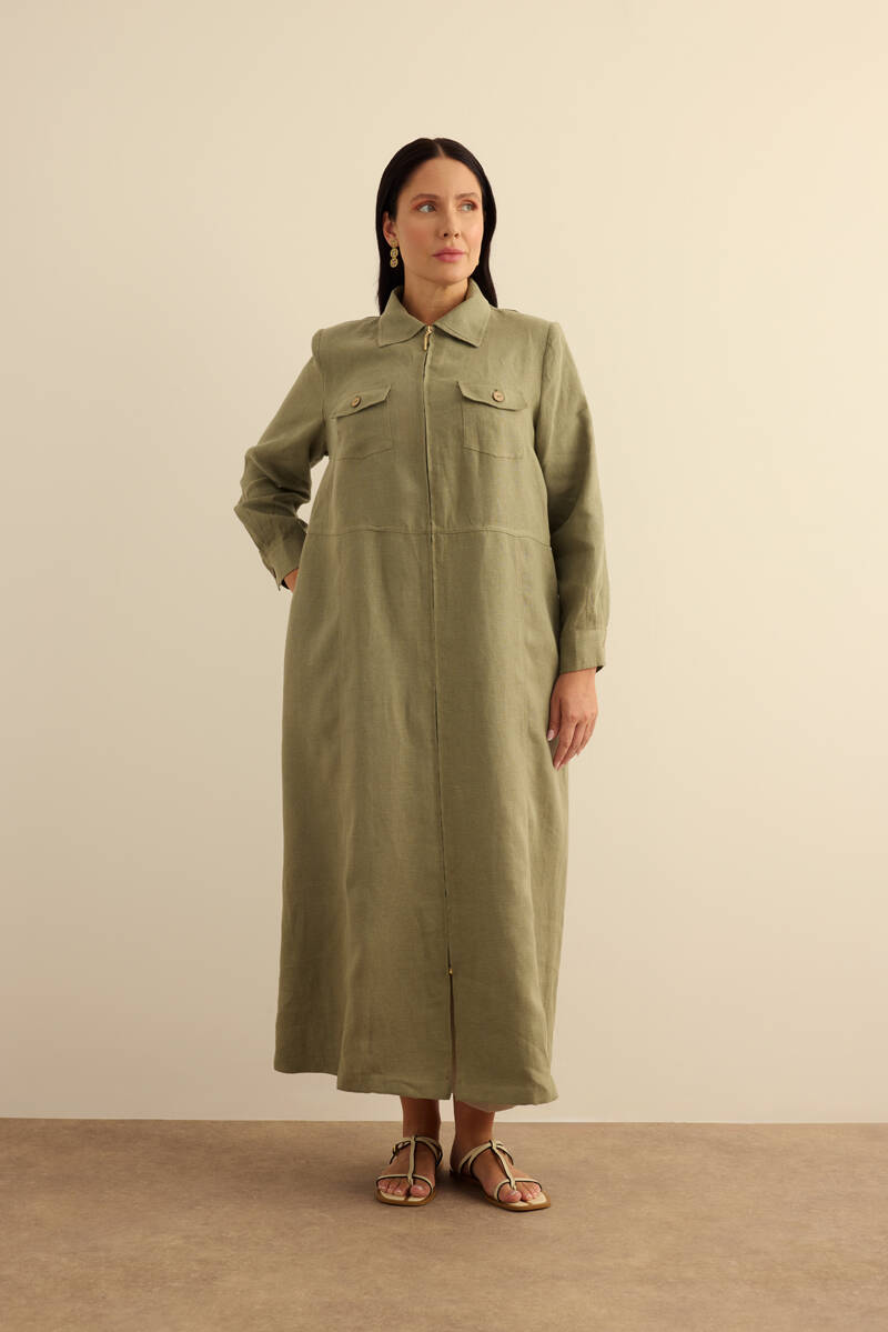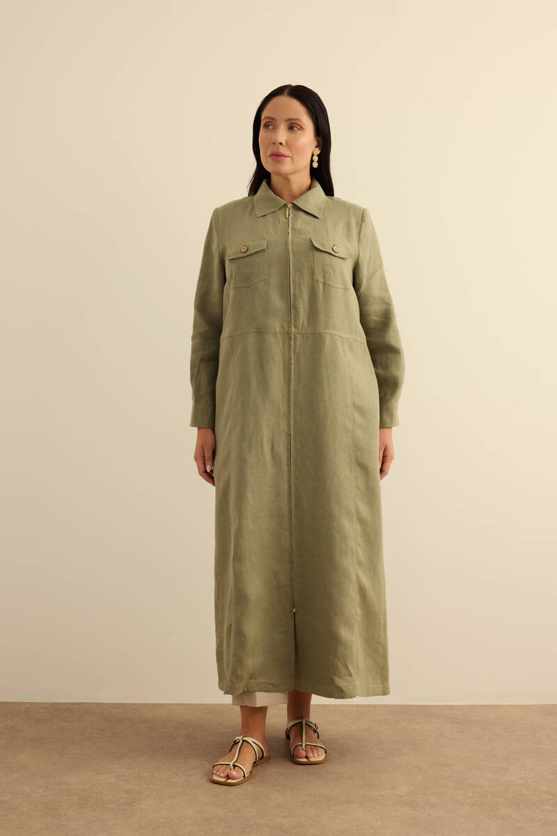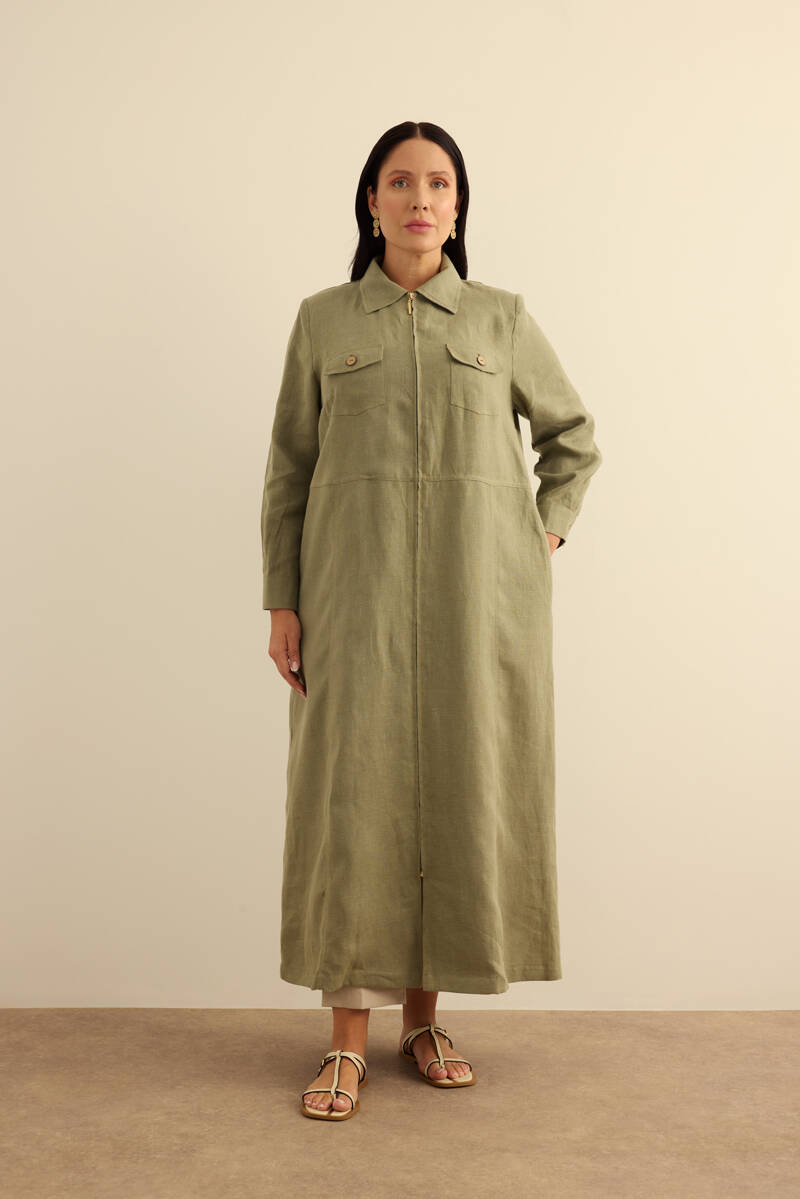 Taş Fermuarlı Keten Ferace