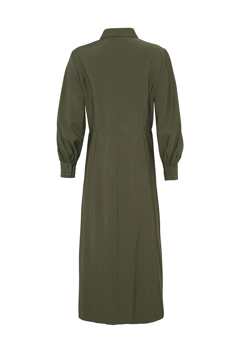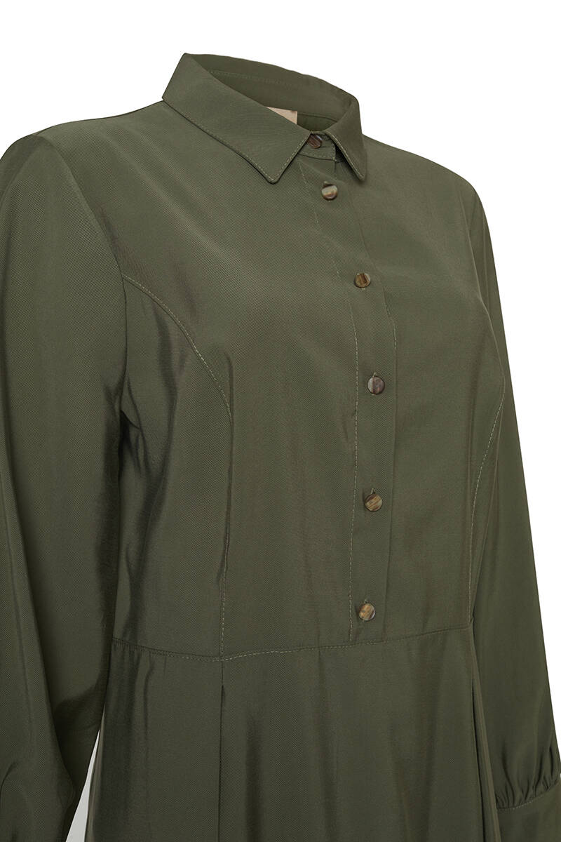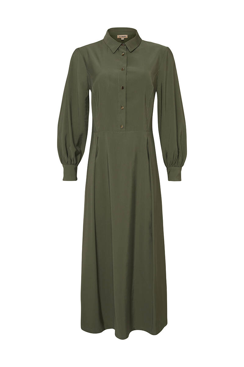 Haki Gömlek Yaka Belden Kesik Elbise