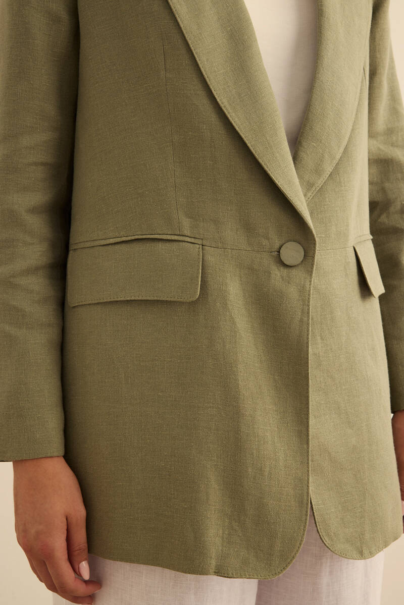 Ekru Yaprak Desenli Keten Kısa Ceket