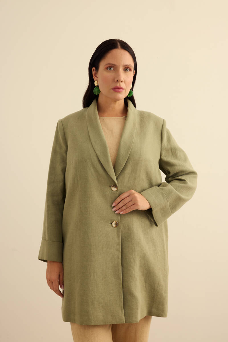 Vizon Seyyar Kuşaklı Keten Kimono