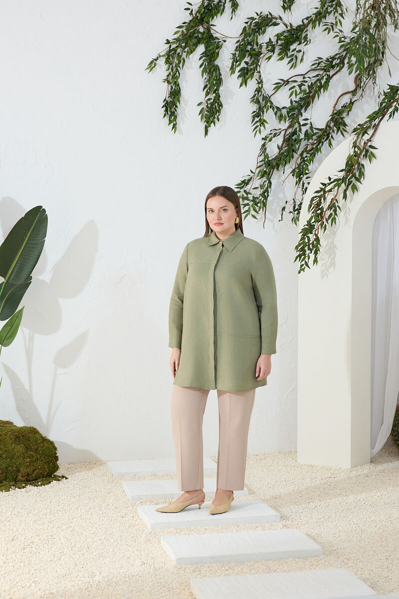 Ekru Bürümcük İp Dokulu , Viscon Keten Tunik