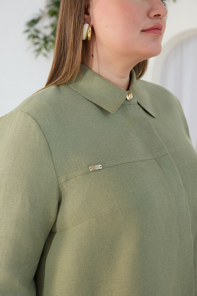 Kahverengi Yakası Fermuarlı Keten Tencel Tunik
