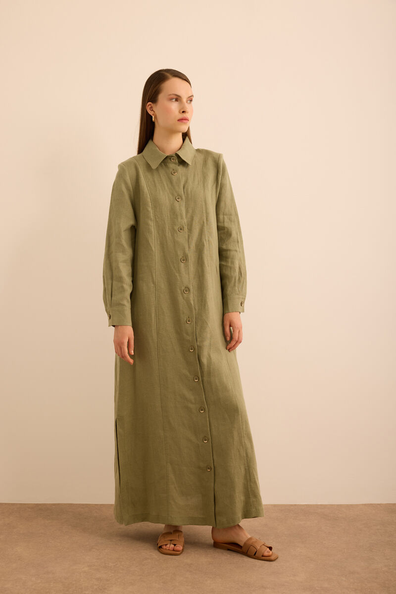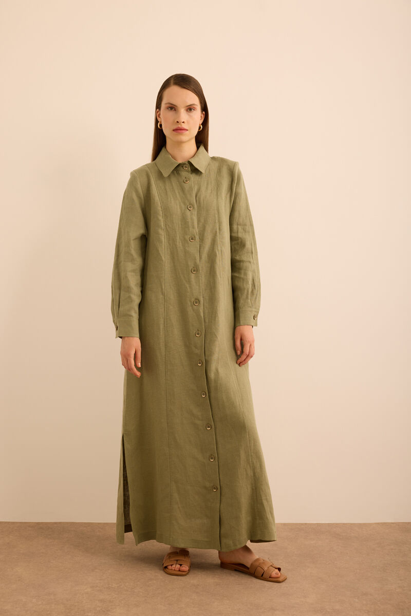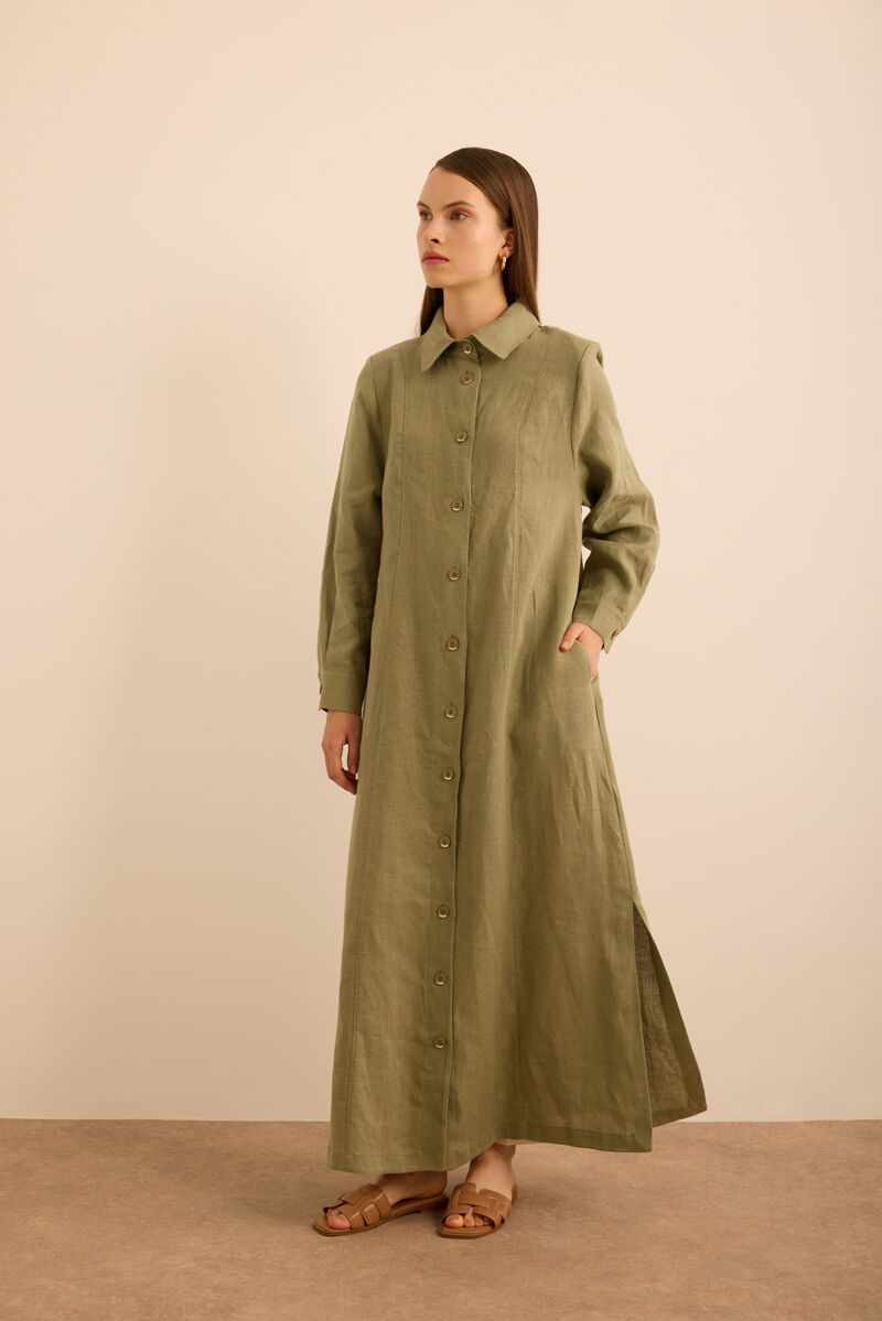 Bej Yanları Yırtmaçlı Keten Pardösü