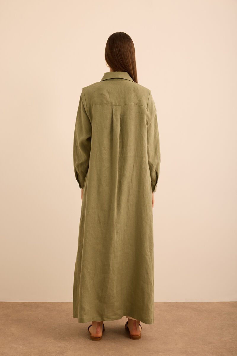 Haki Beli Lastikli Keten Pantolon