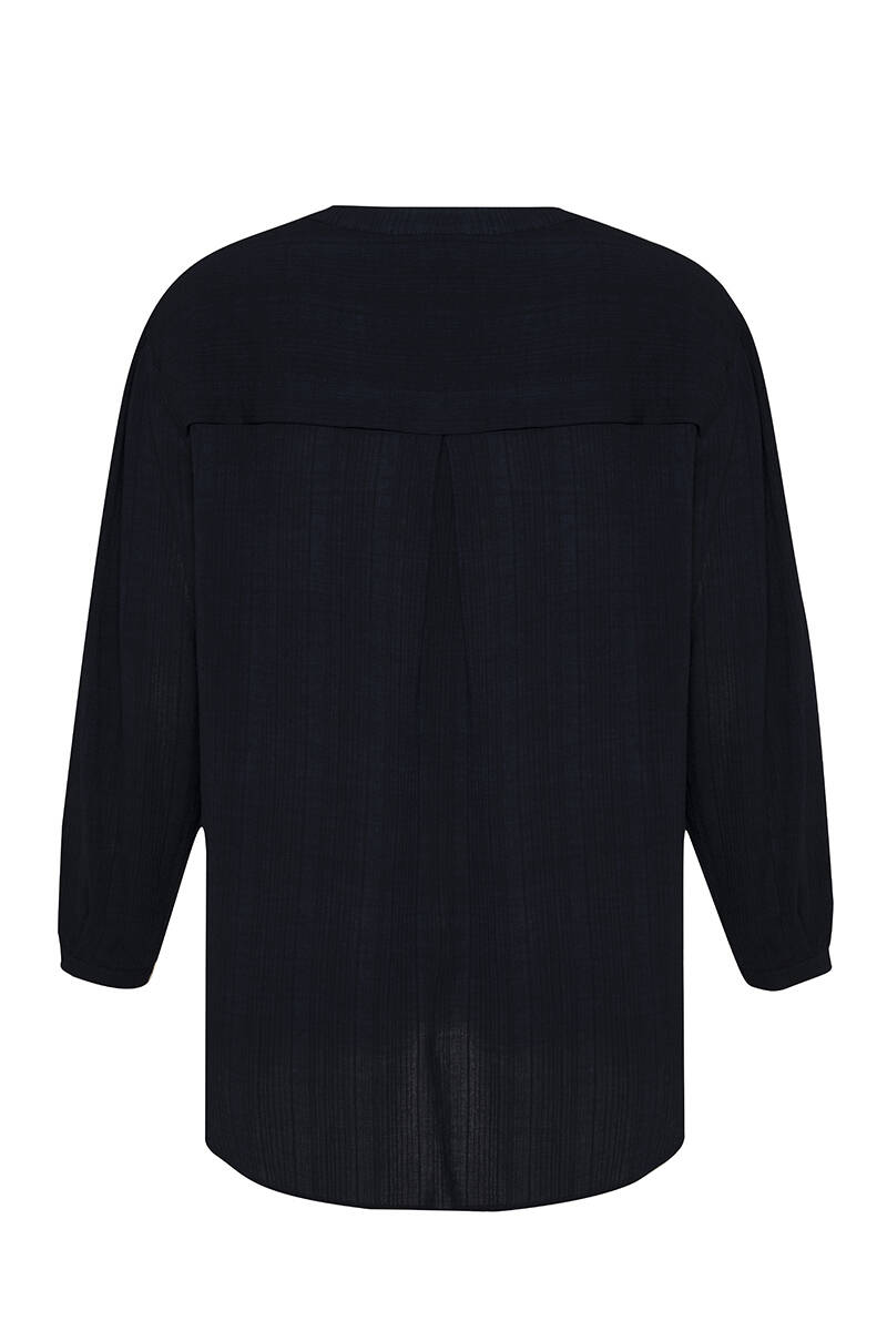 Antrasit Yaka İşlemeli Çizgili Bluz