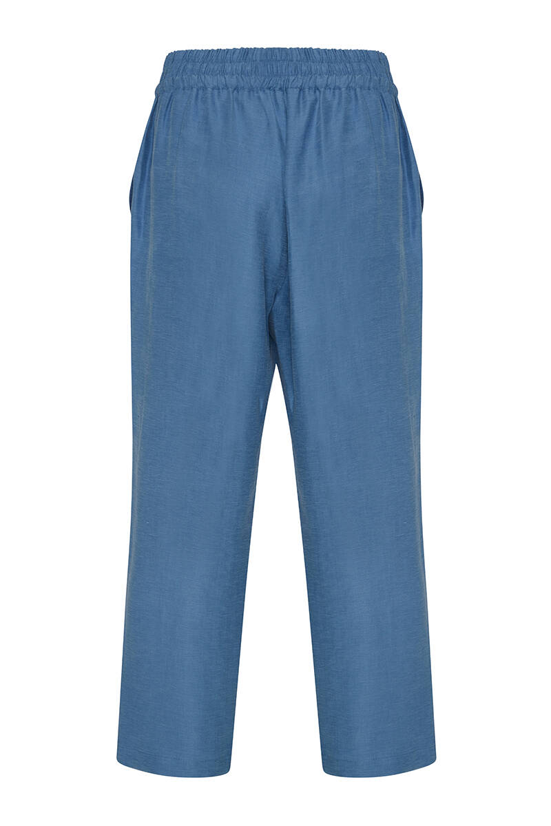 İndigo Arka Bel Lastikli Keten Pantolon
