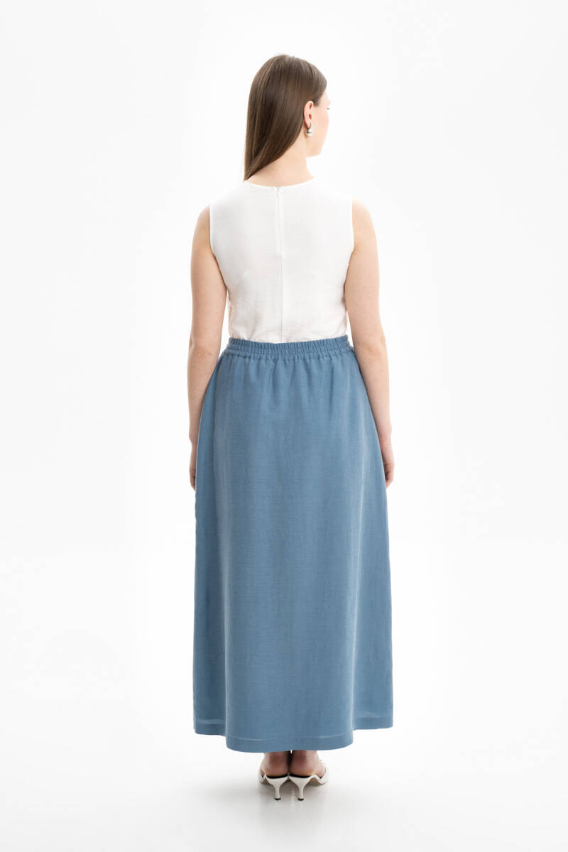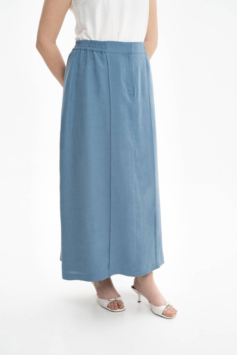 İndigo Beli Lastikli Keten Etek