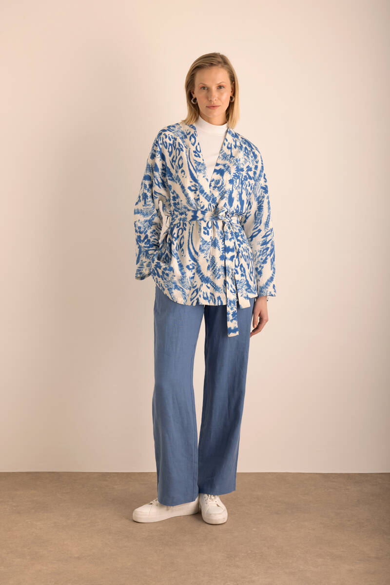 İndigo Rahat Form Keten Bluz