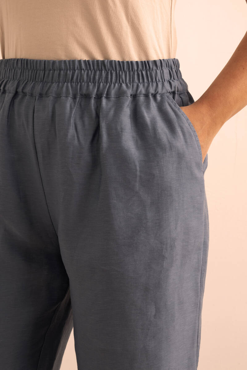 İndigo Beli Lastikli Keten Tencel Pantolon