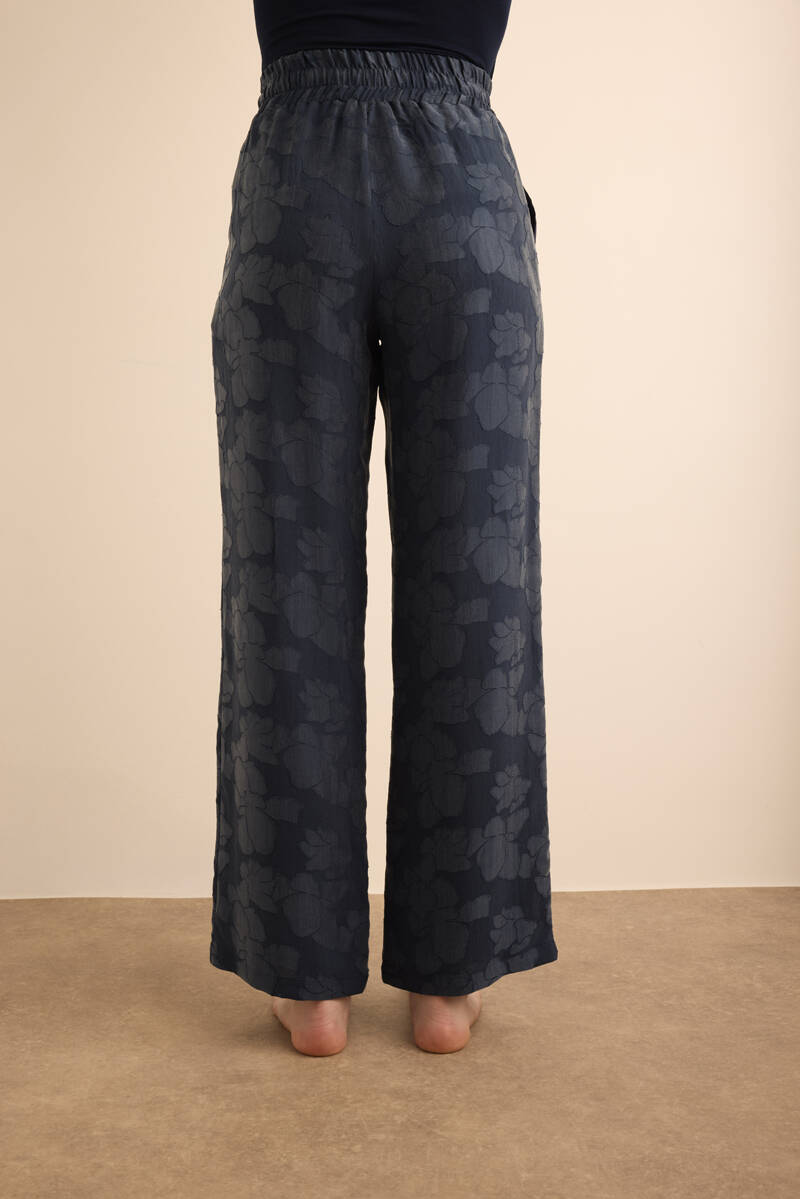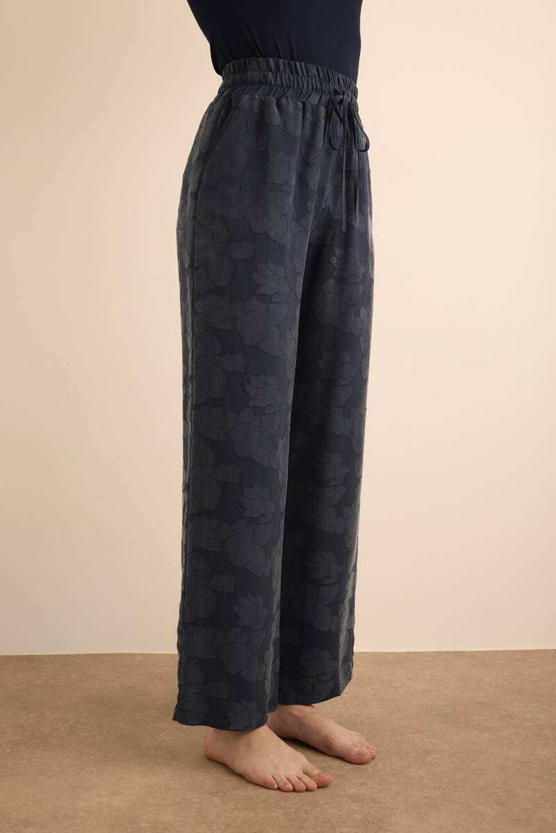 Lacivert Çiçek Dokulu Tencel, Beli Lastikli Pijama Altı