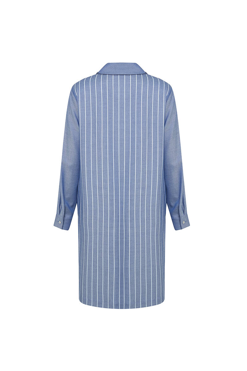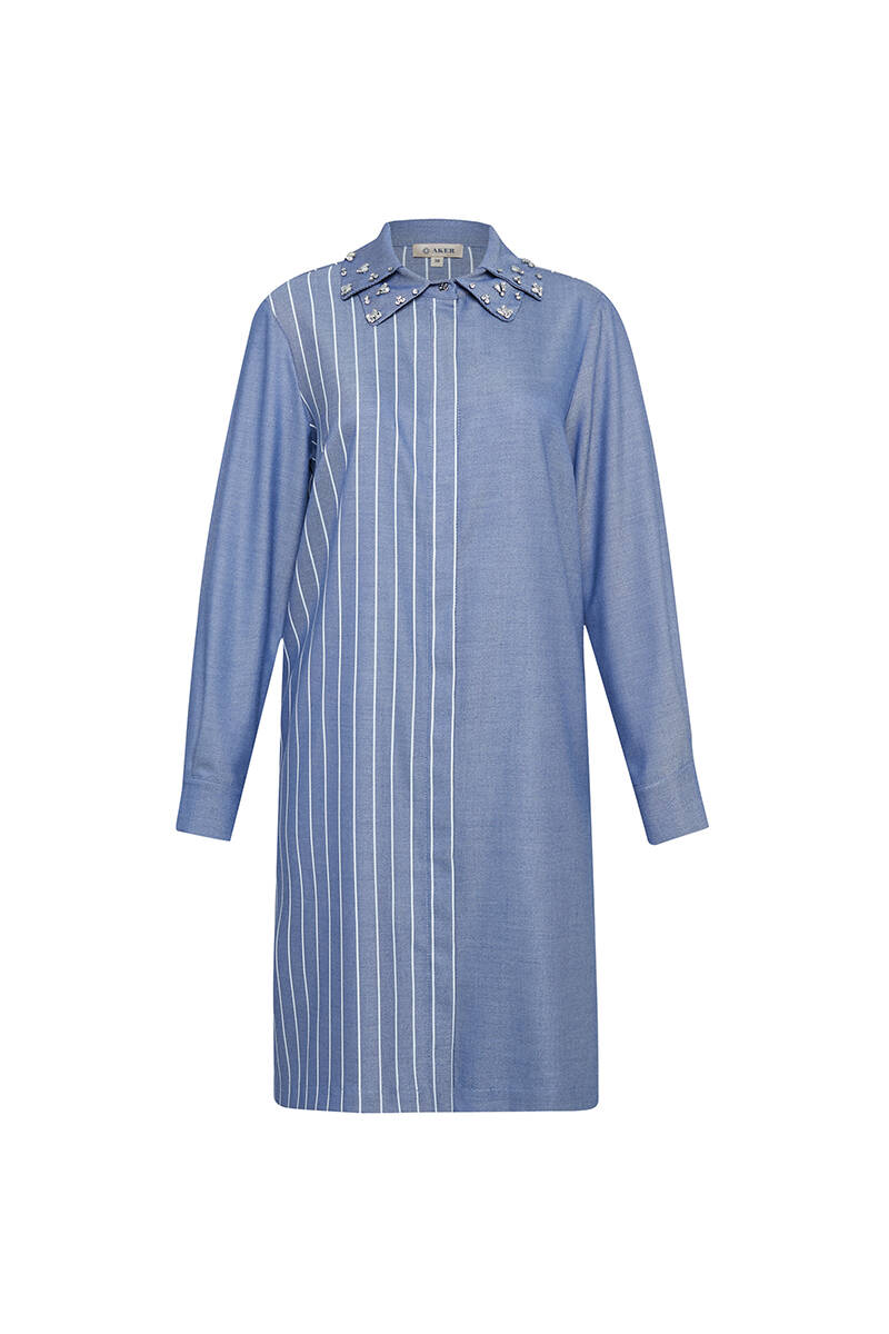İndigo Çift Yaka Detaylı İşlemeli Tunik