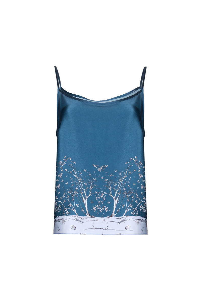 İndigo Desenli İpek ,Önden Düğmeli Pijama Üstü