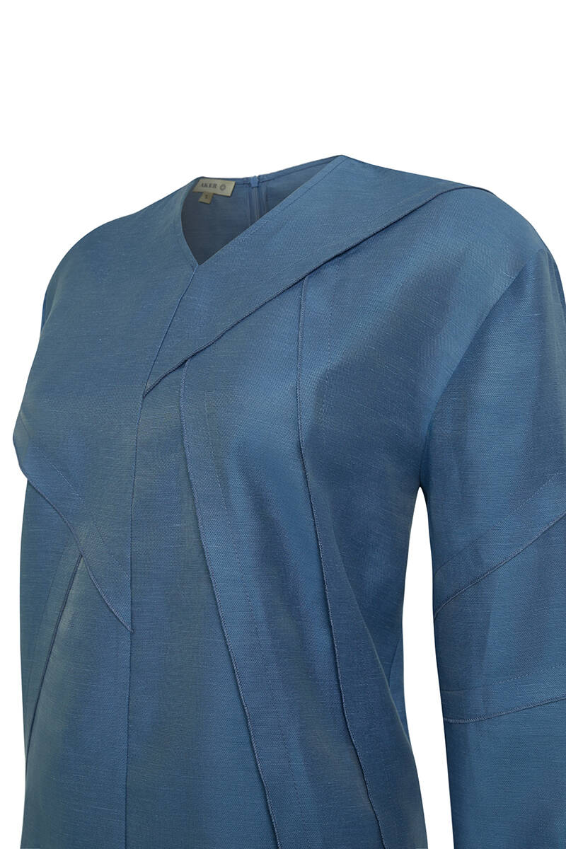 İndigo Dikiş Detaylı Hakim Yaka Tunik