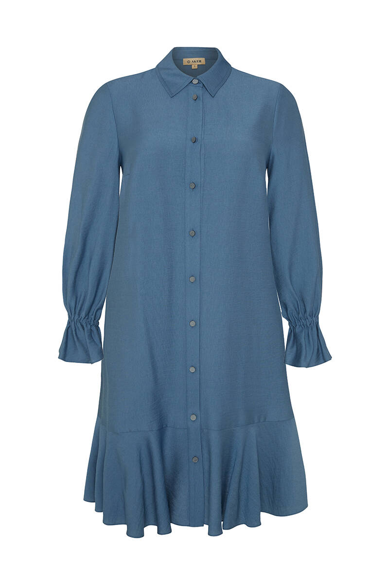 İndigo Etek Ucu Volanlı Tunik