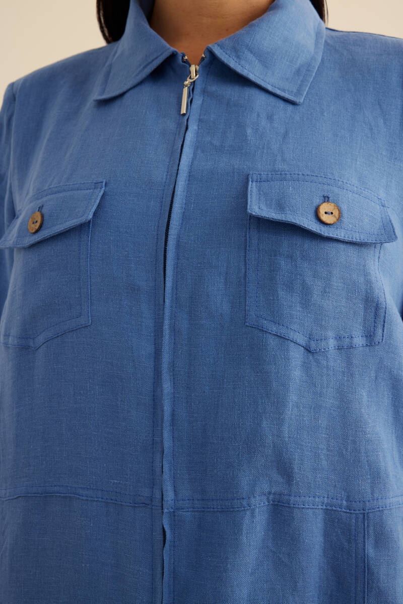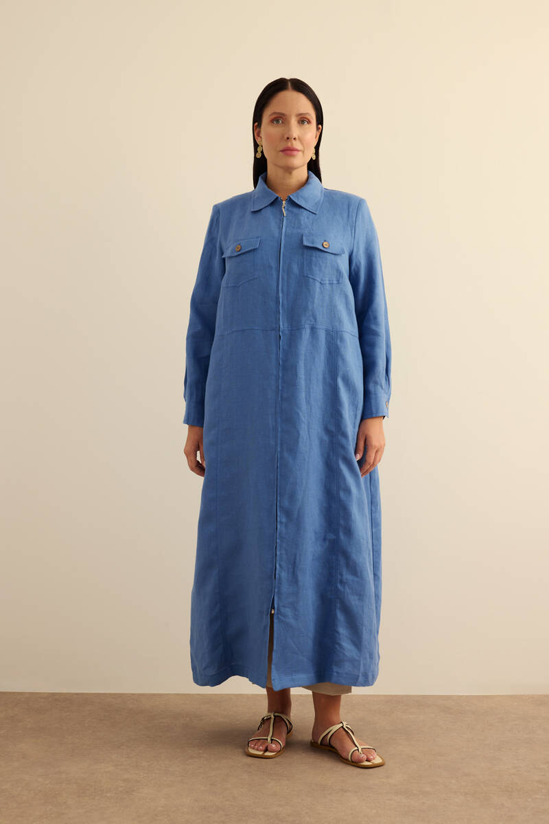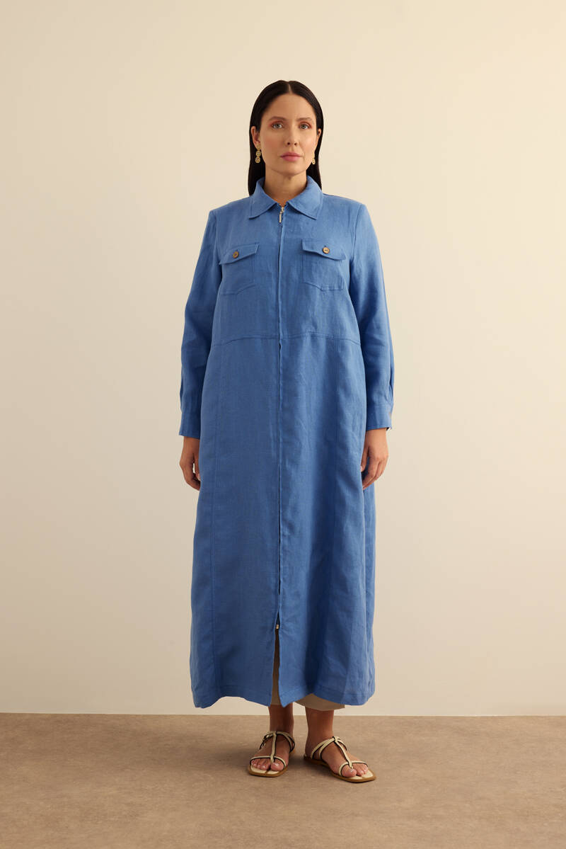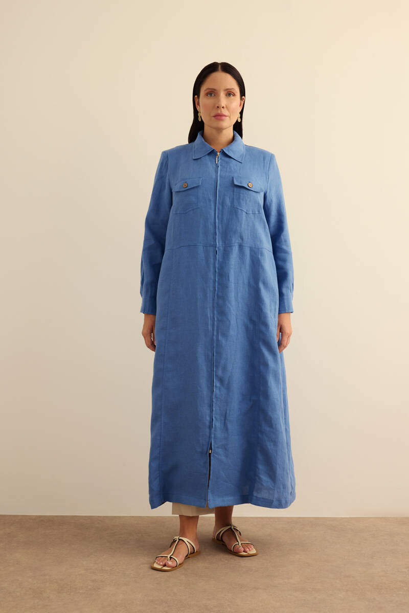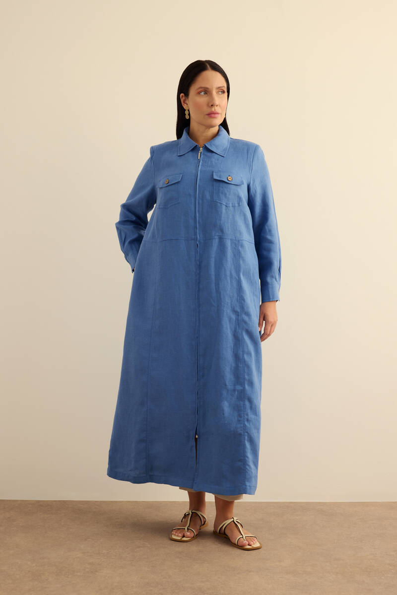Taş Fermuarlı Keten Ferace