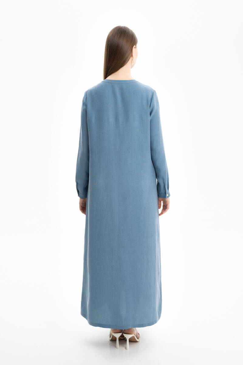İndigo Hakim Yaka Rahat Kesim Elbise