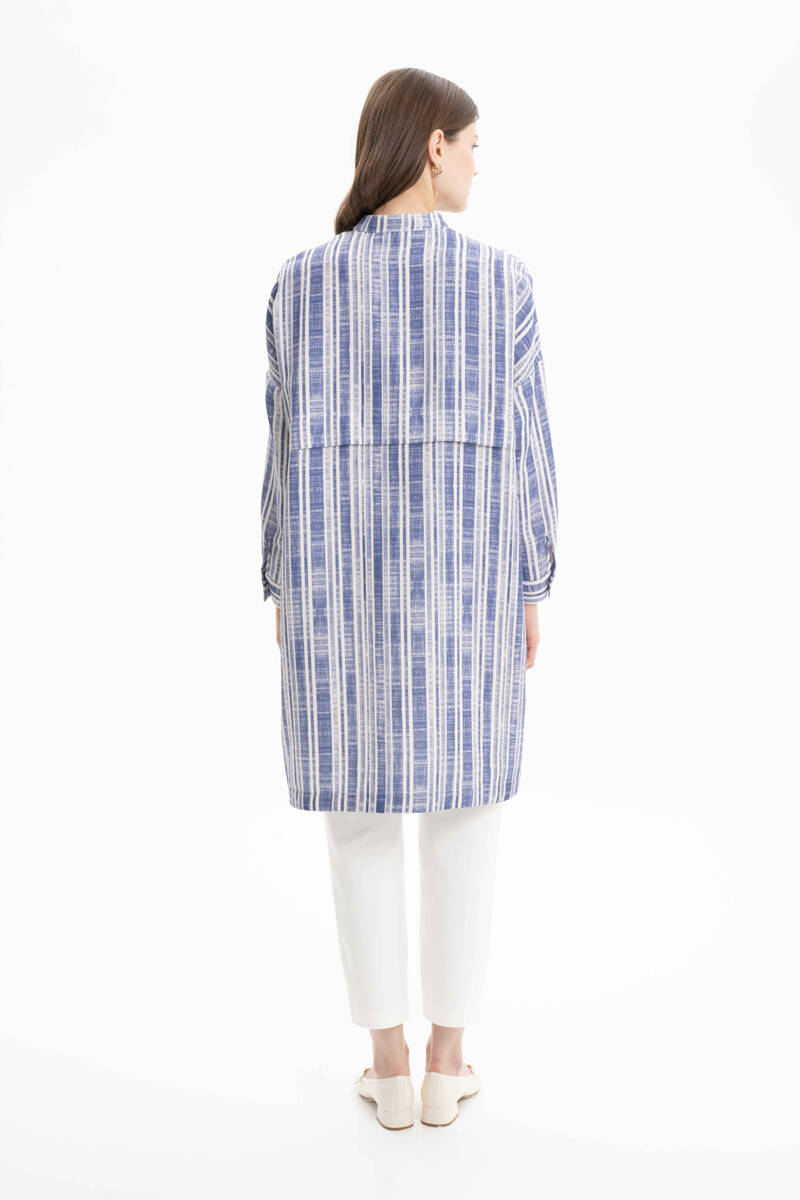 İndigo Dikiş Detaylı Hakim Yaka Tunik