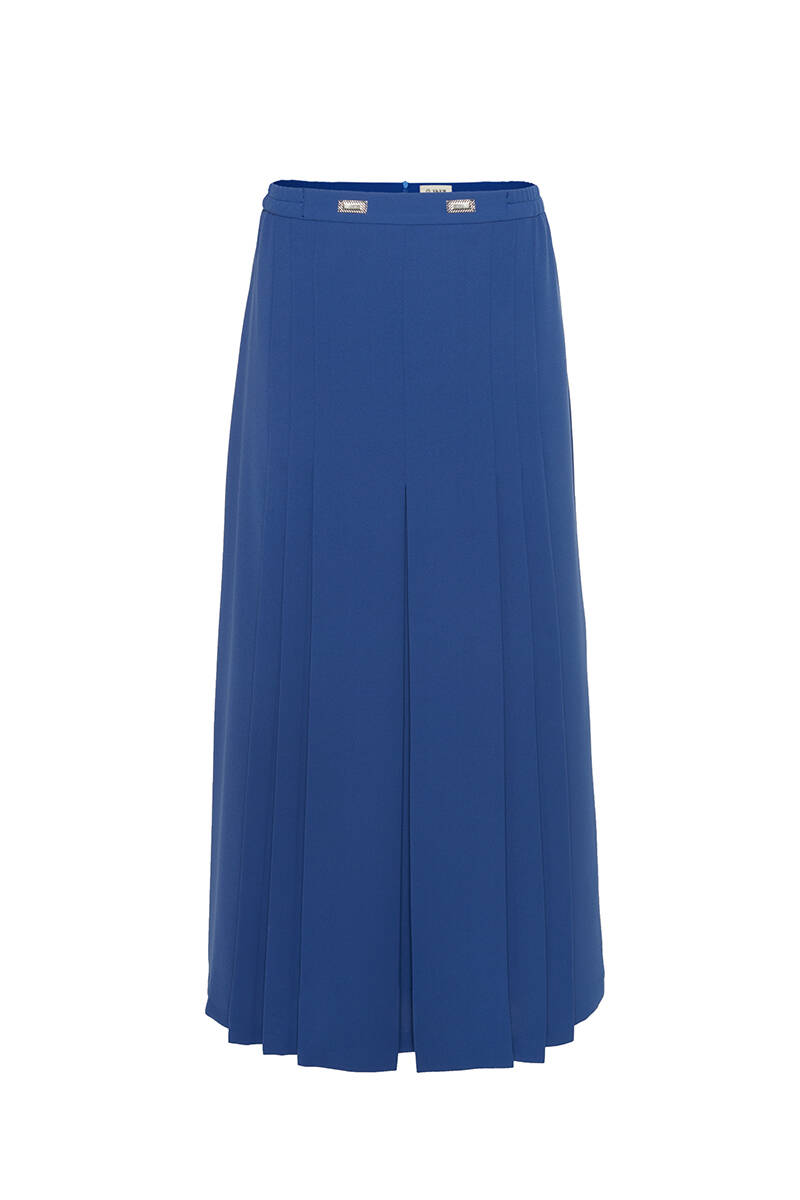 Lacivert Dokuma Beli Lastik Detaylı Etek