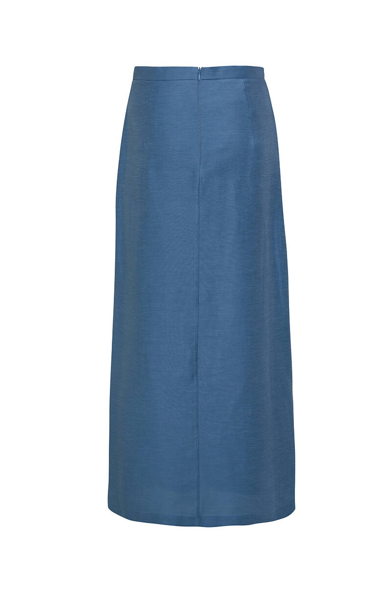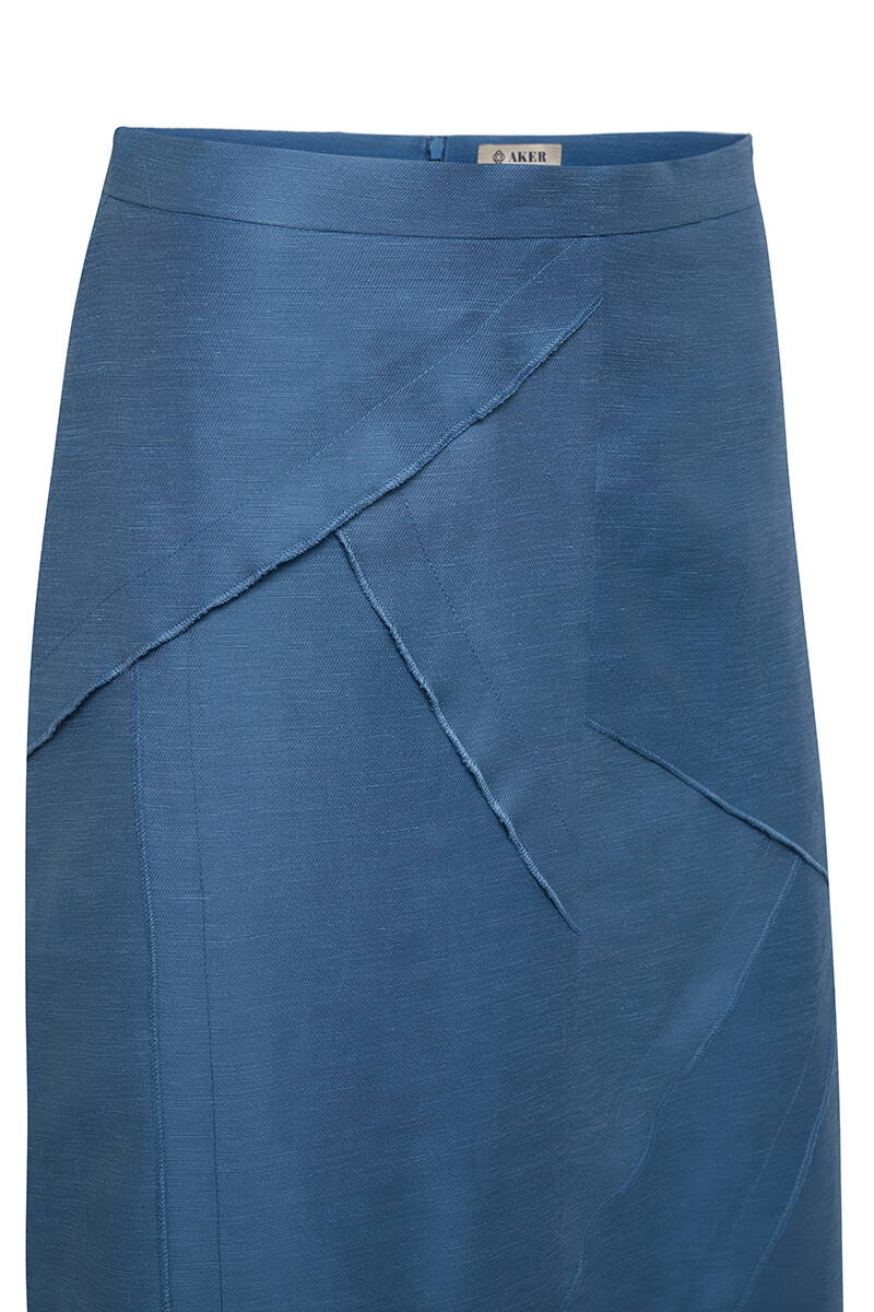 İndigo Parçalı Keten Etek