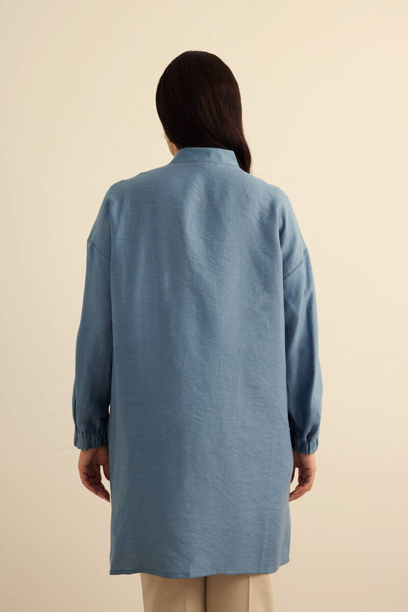 İndigo Yakası Fermuarlı Keten Tencel Tunik