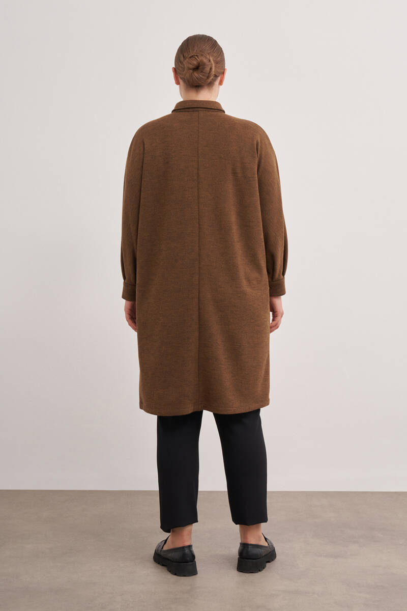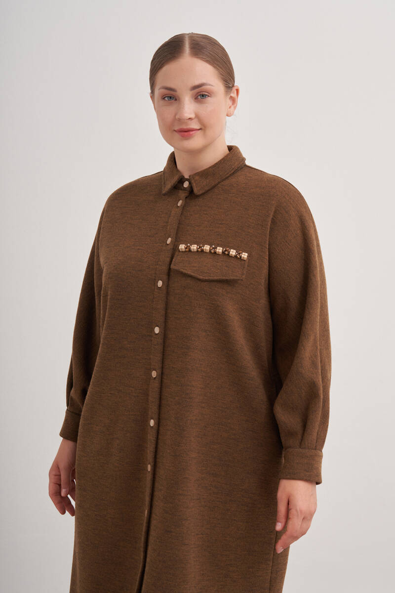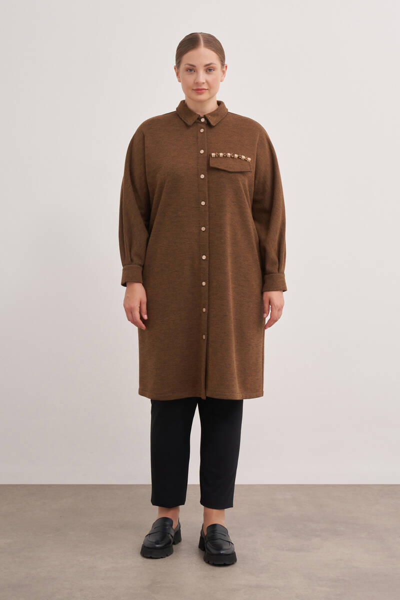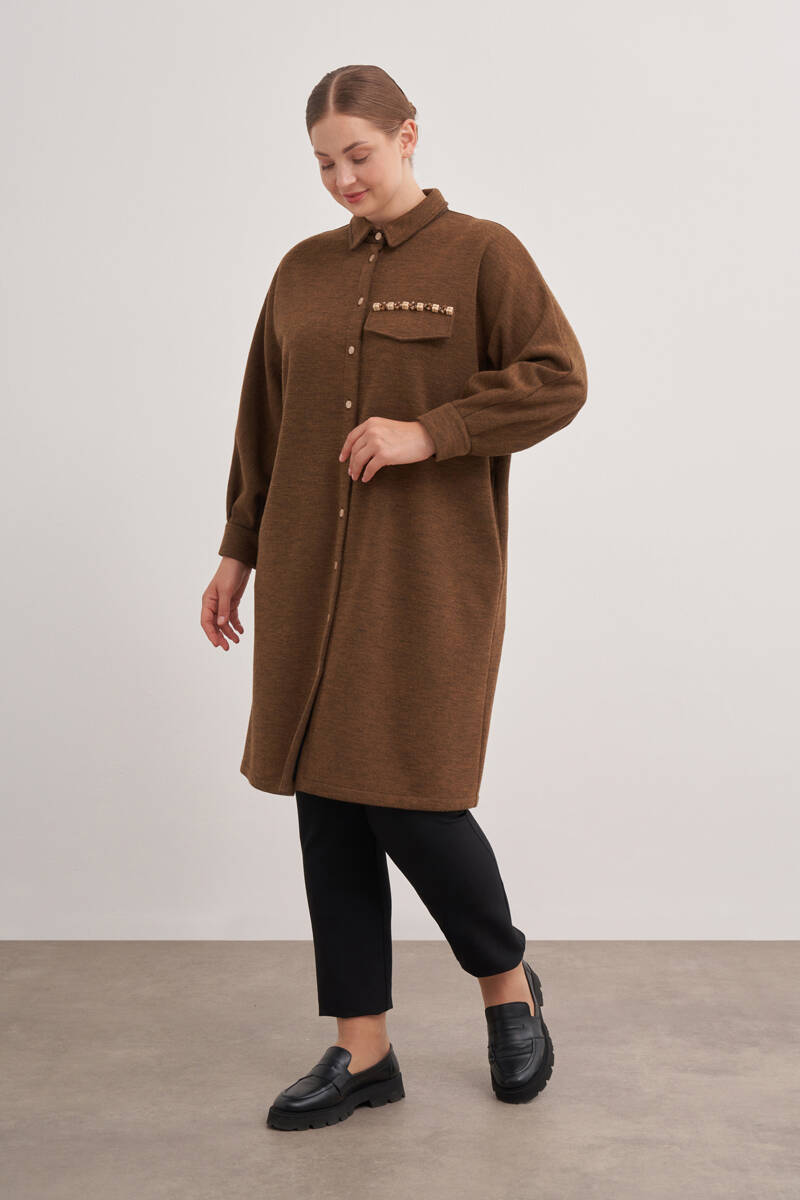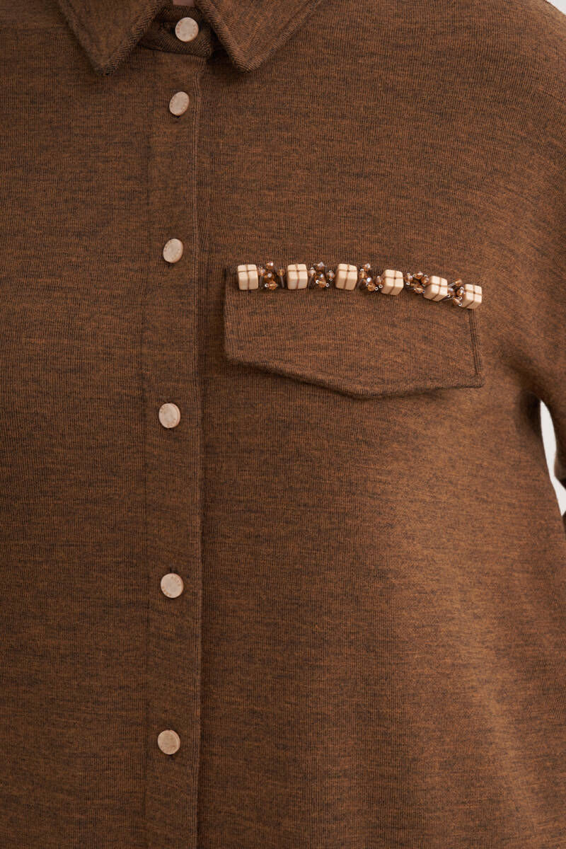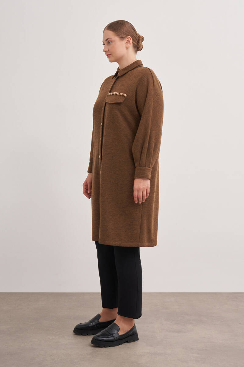 Ekru Yakası Taşlı Düğmeli Kap