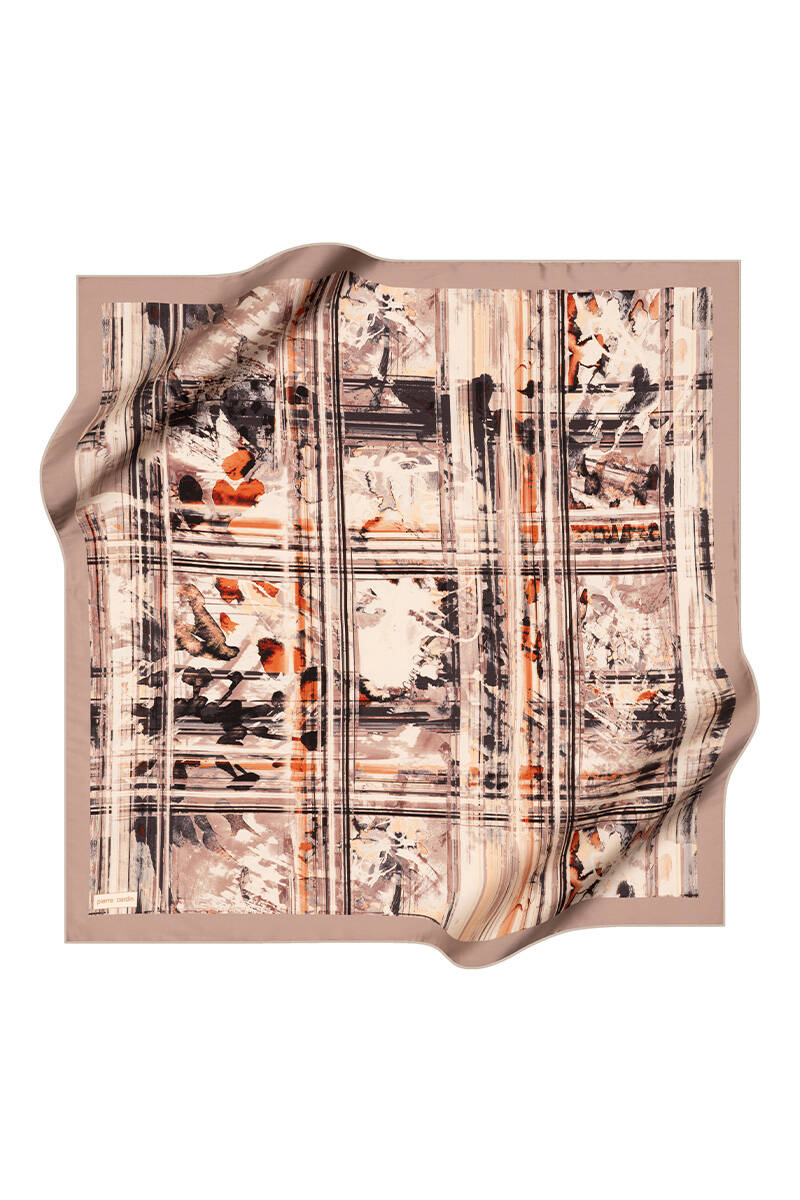 Kahverengi 90X90 İpek Krep Saten Eşarp