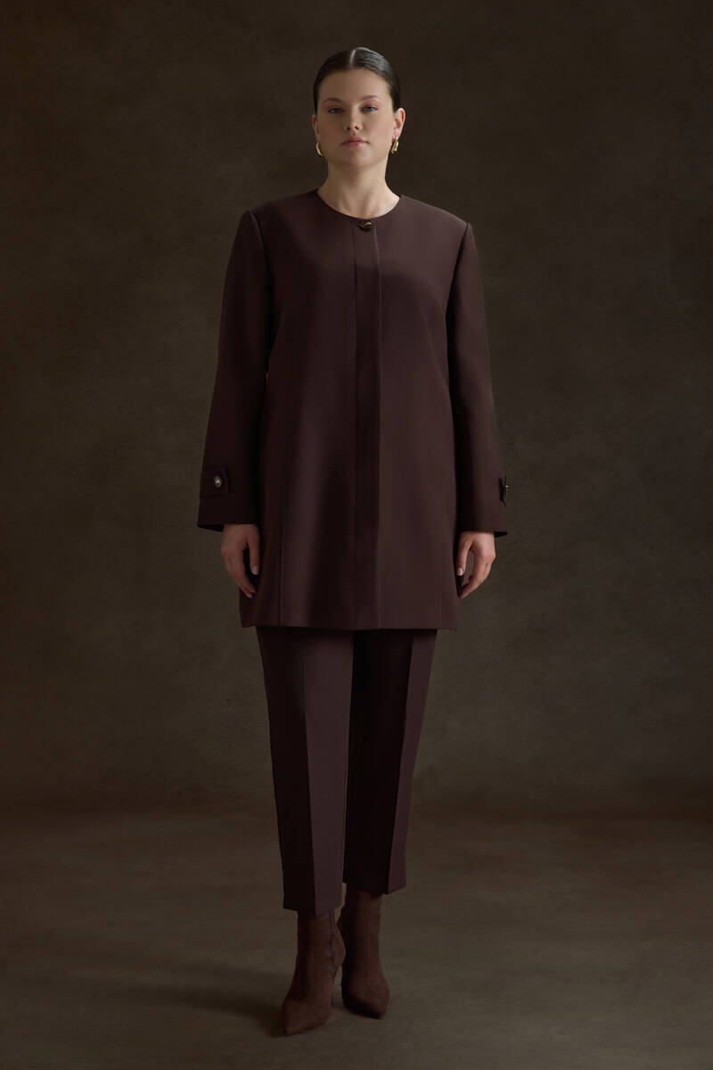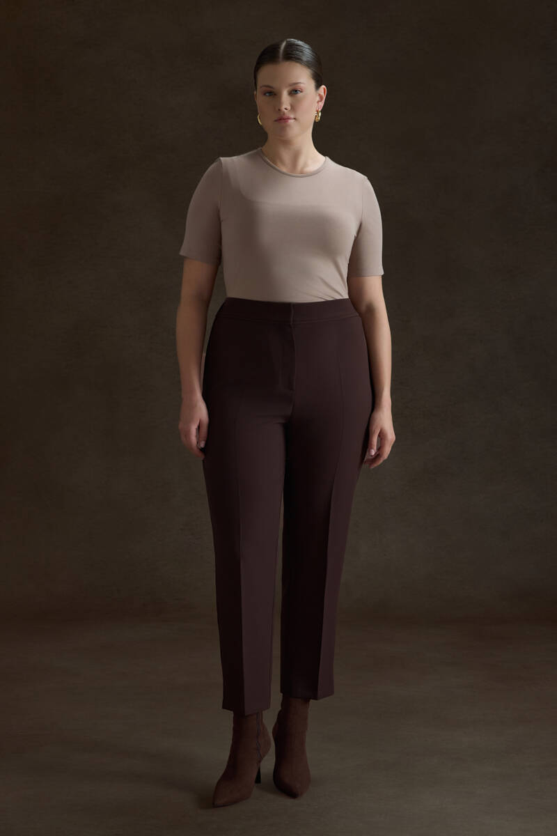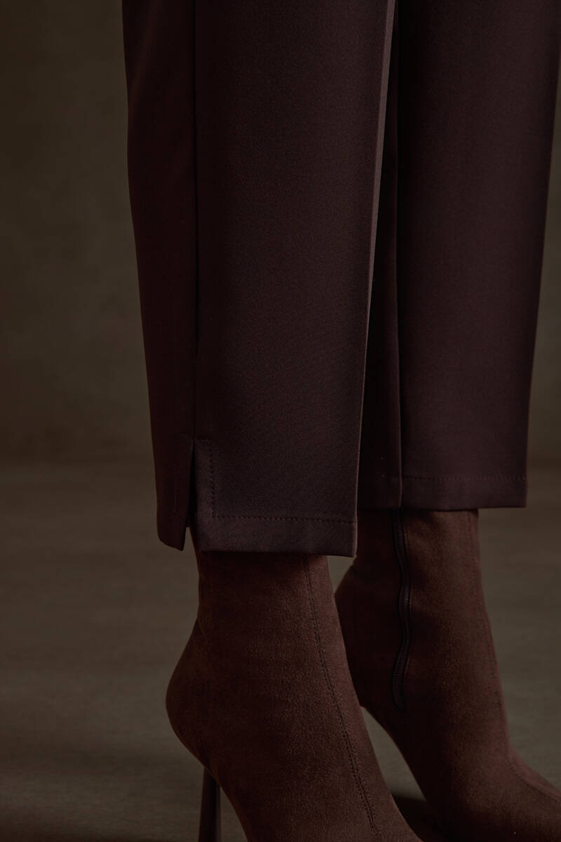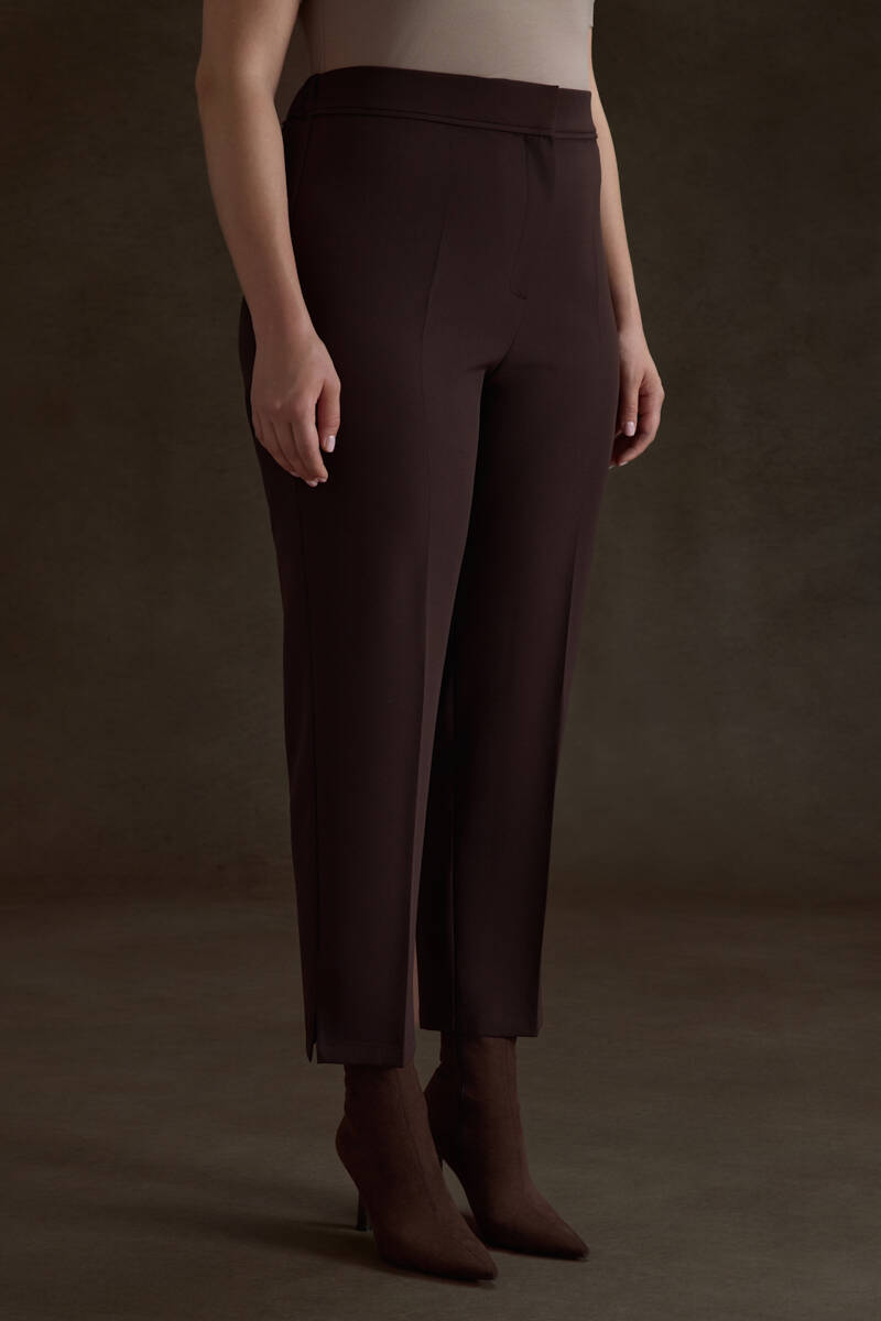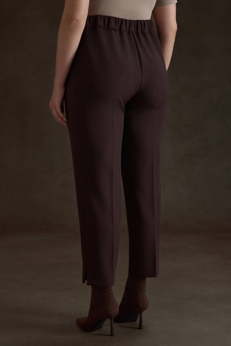 Kahverengi Arka Beli Lastik Detaylı Dokuma Pantolon