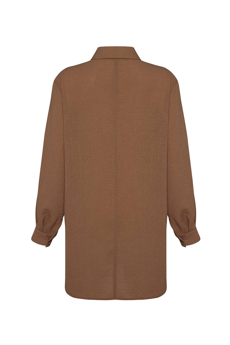 Ekru Pelerinli Düğmeli Bluz