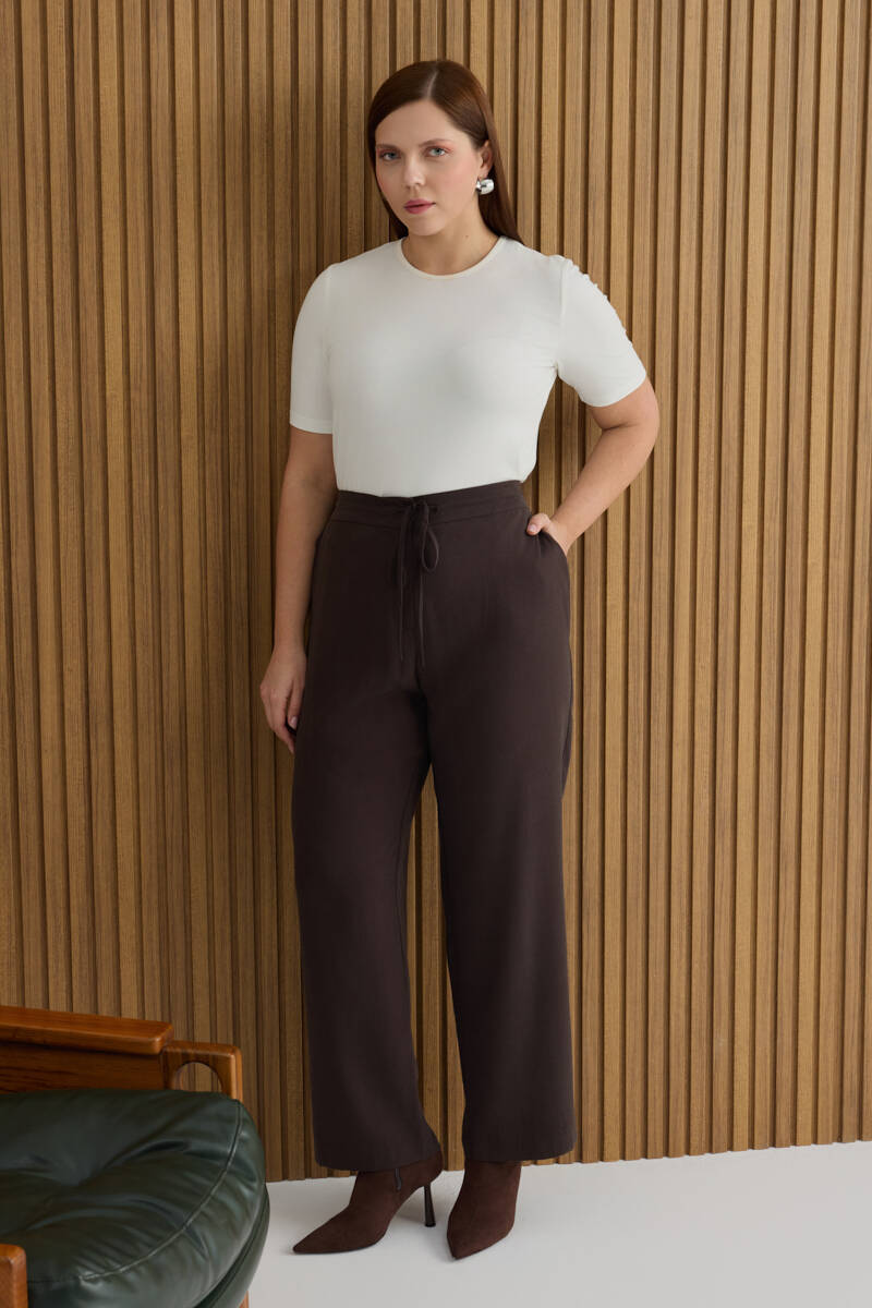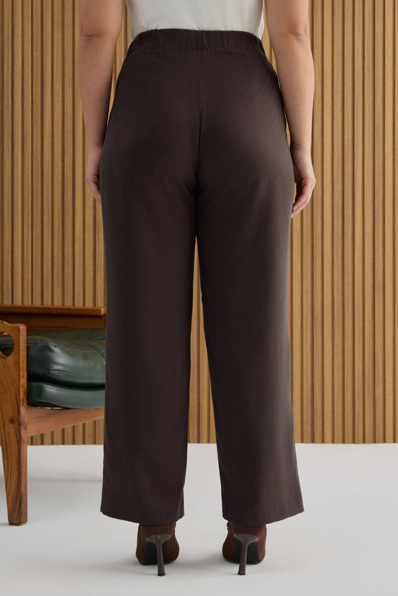 Kahverengi Beli Lastikli Dokuma Pantolon