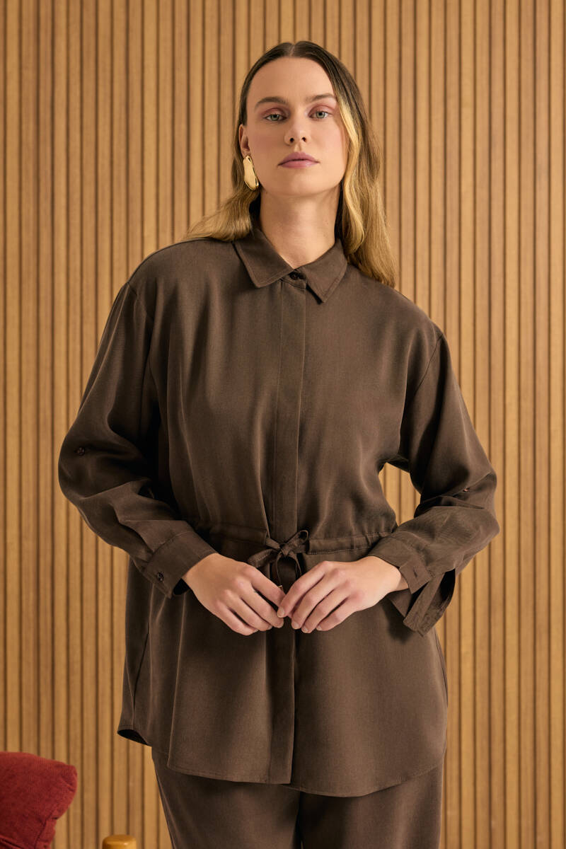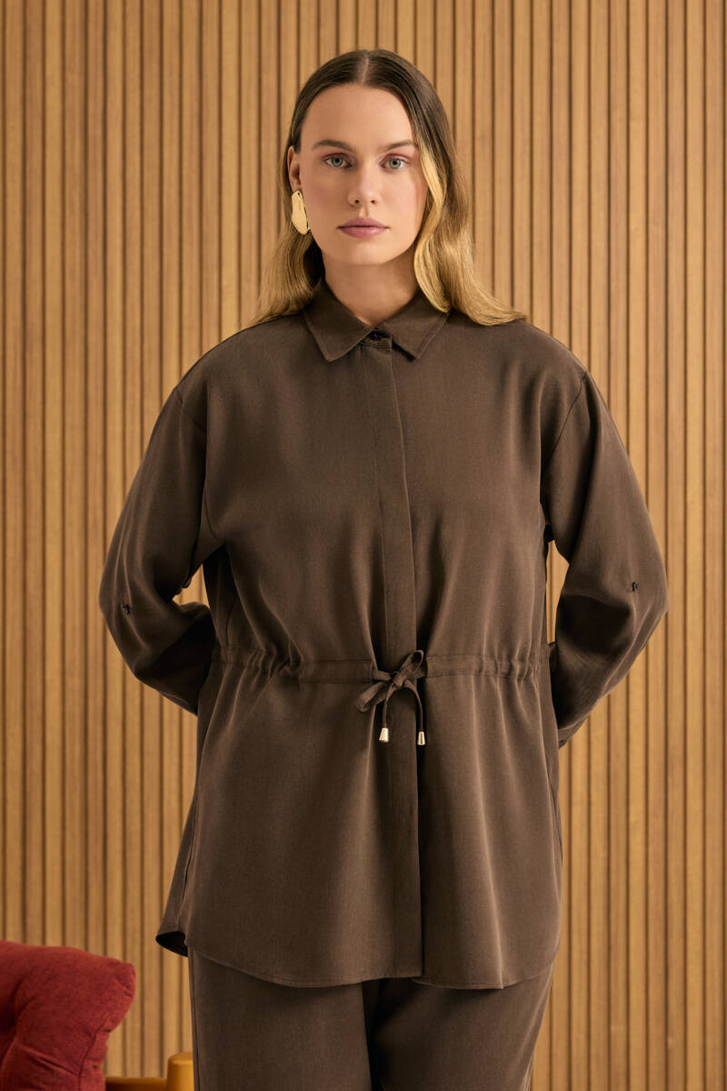 Saks Önden Apolet Detaylı Dokuma Tunik