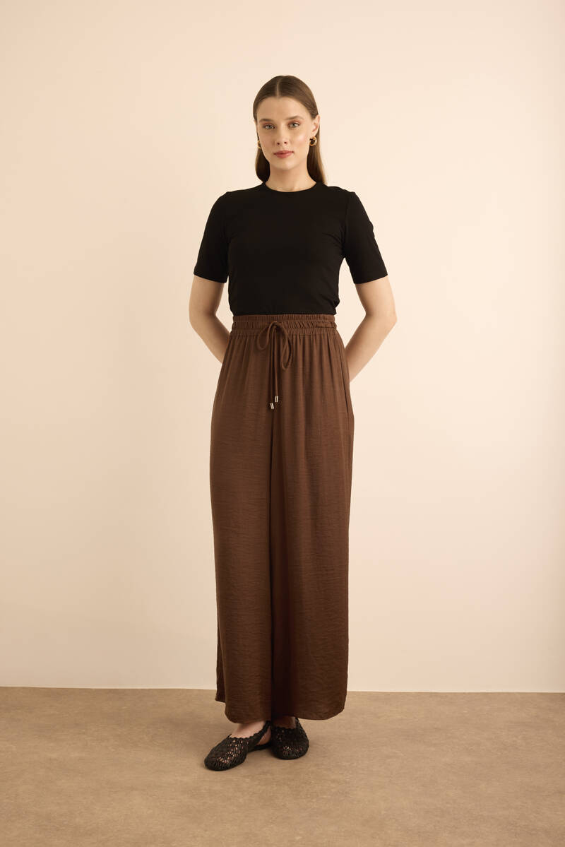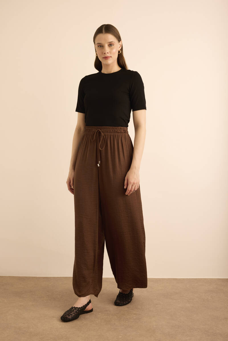Siyah Beli ve Paçası Lastikli Balon Form Keten Pantolon