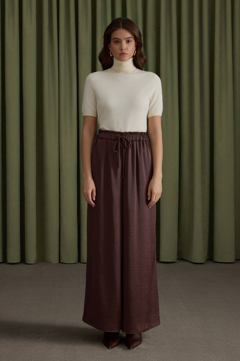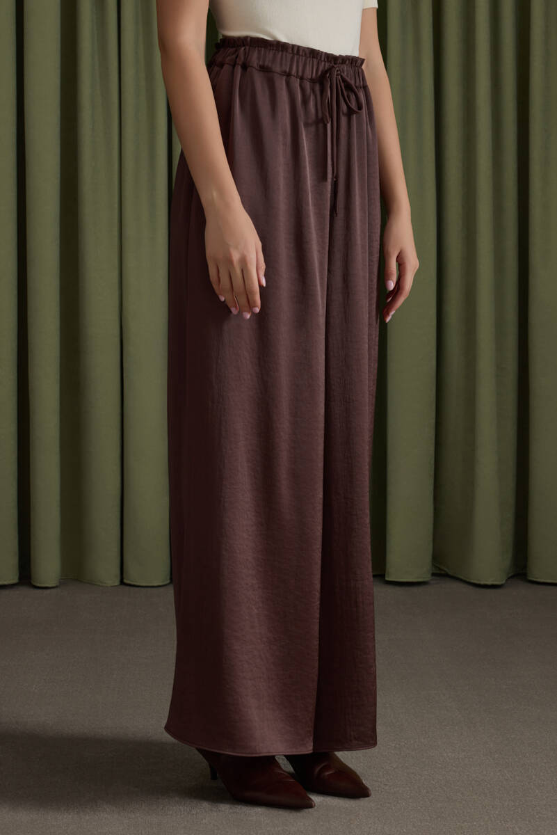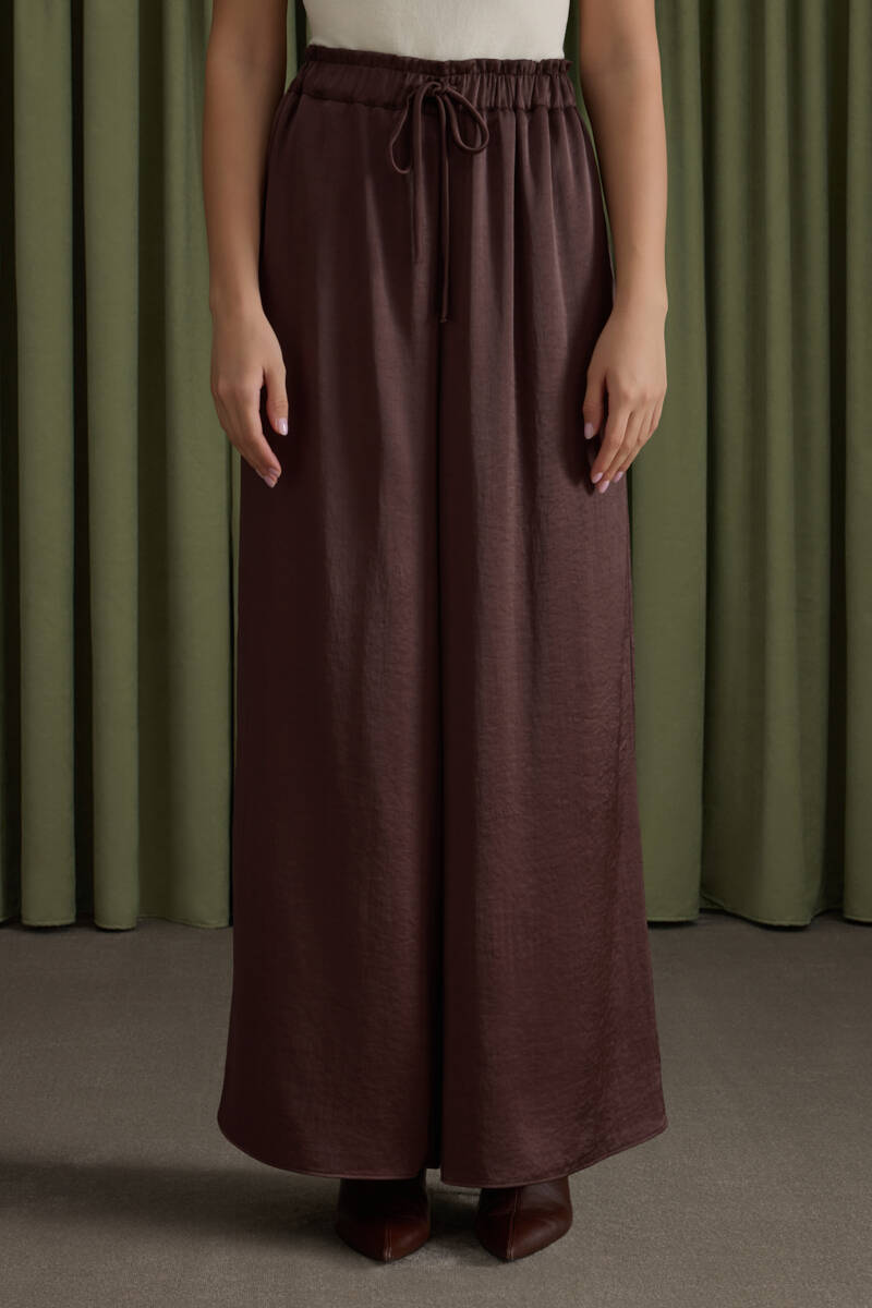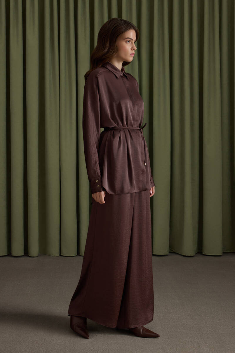Kahverengi Saten Dökümlü Bluz