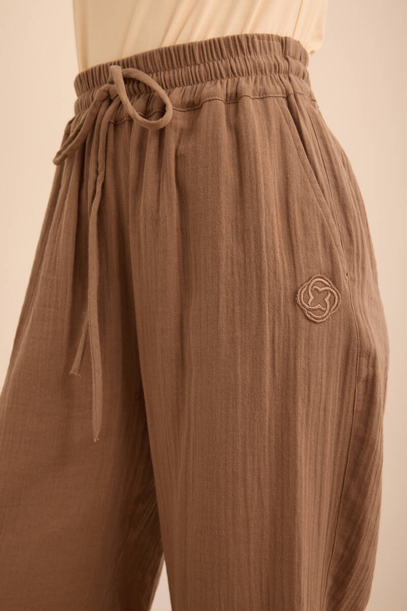 Haki Beli Lastikli Viscon Cotton Pijama Altı