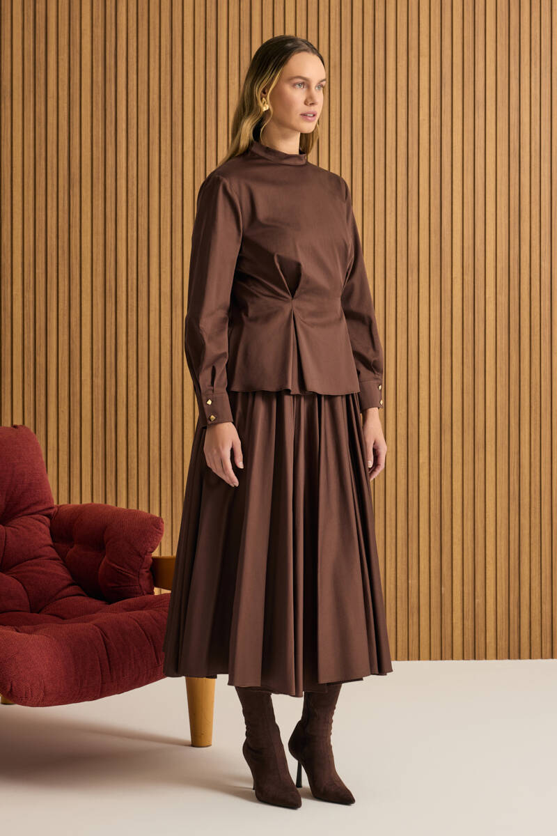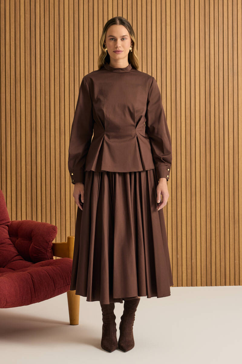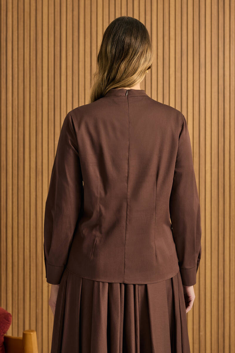 Saks Ön Göğüs Kısmı Pile ve Parça Detaylı Bluz
