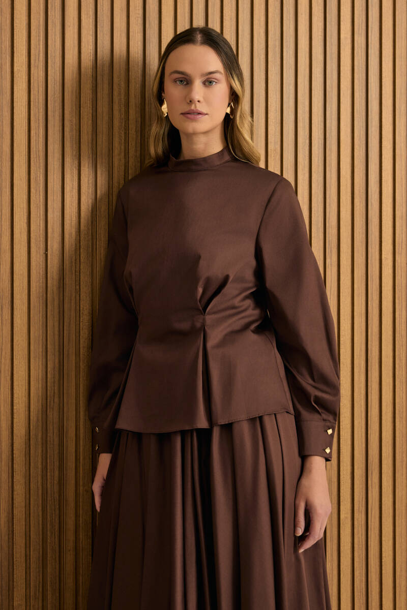 Ön Göğüs Kısmı Pile ve Parça Detaylı Bluz