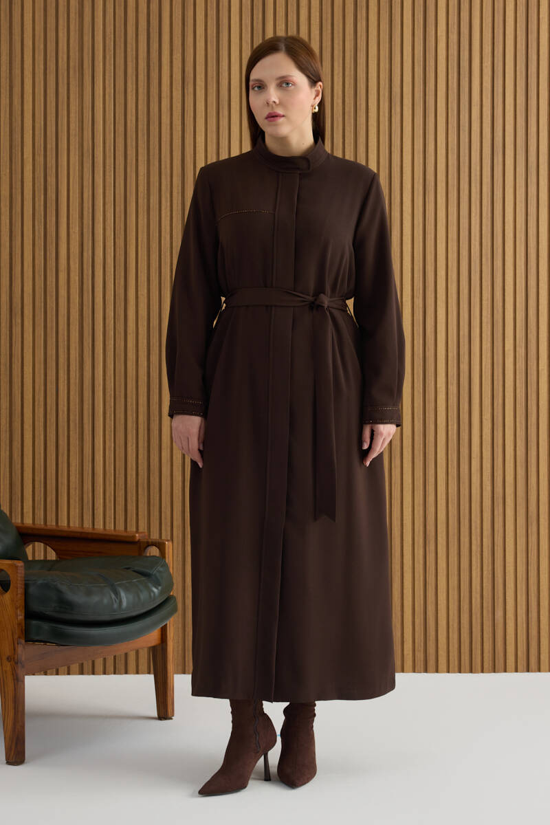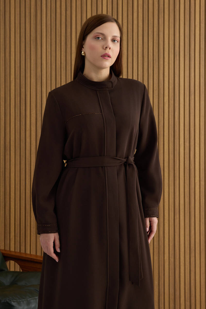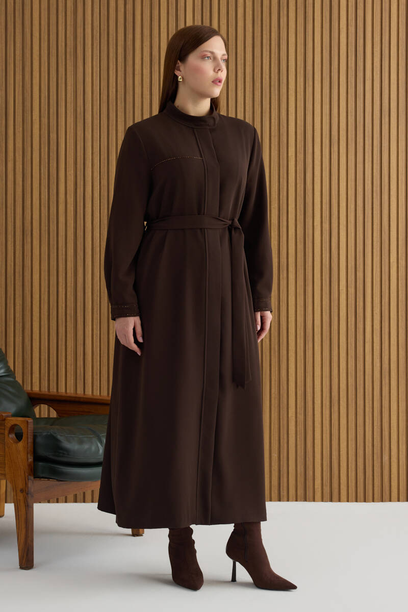 Taş Fermuarlı Keten Ferace
