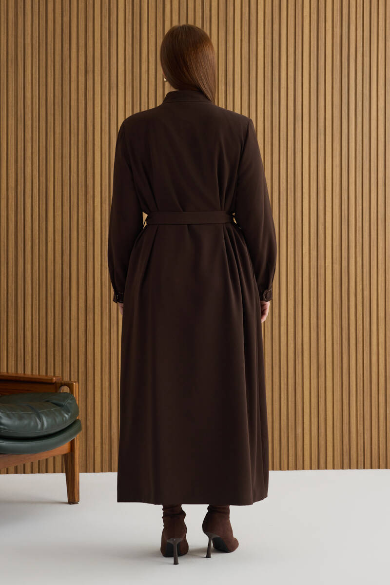 Bej Boncuk İşleme Detaylı Ferace