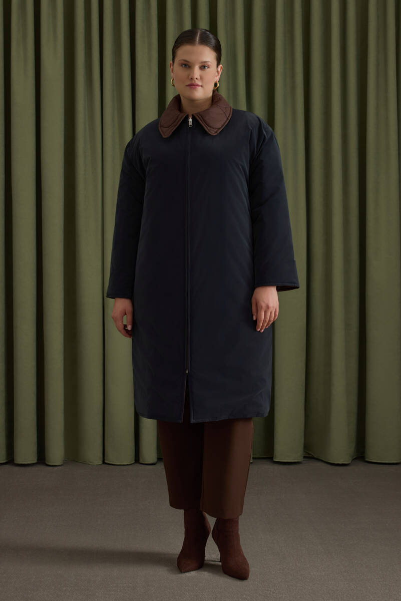 Siyah Seyyar Kapüşonlu Kapitone Mont