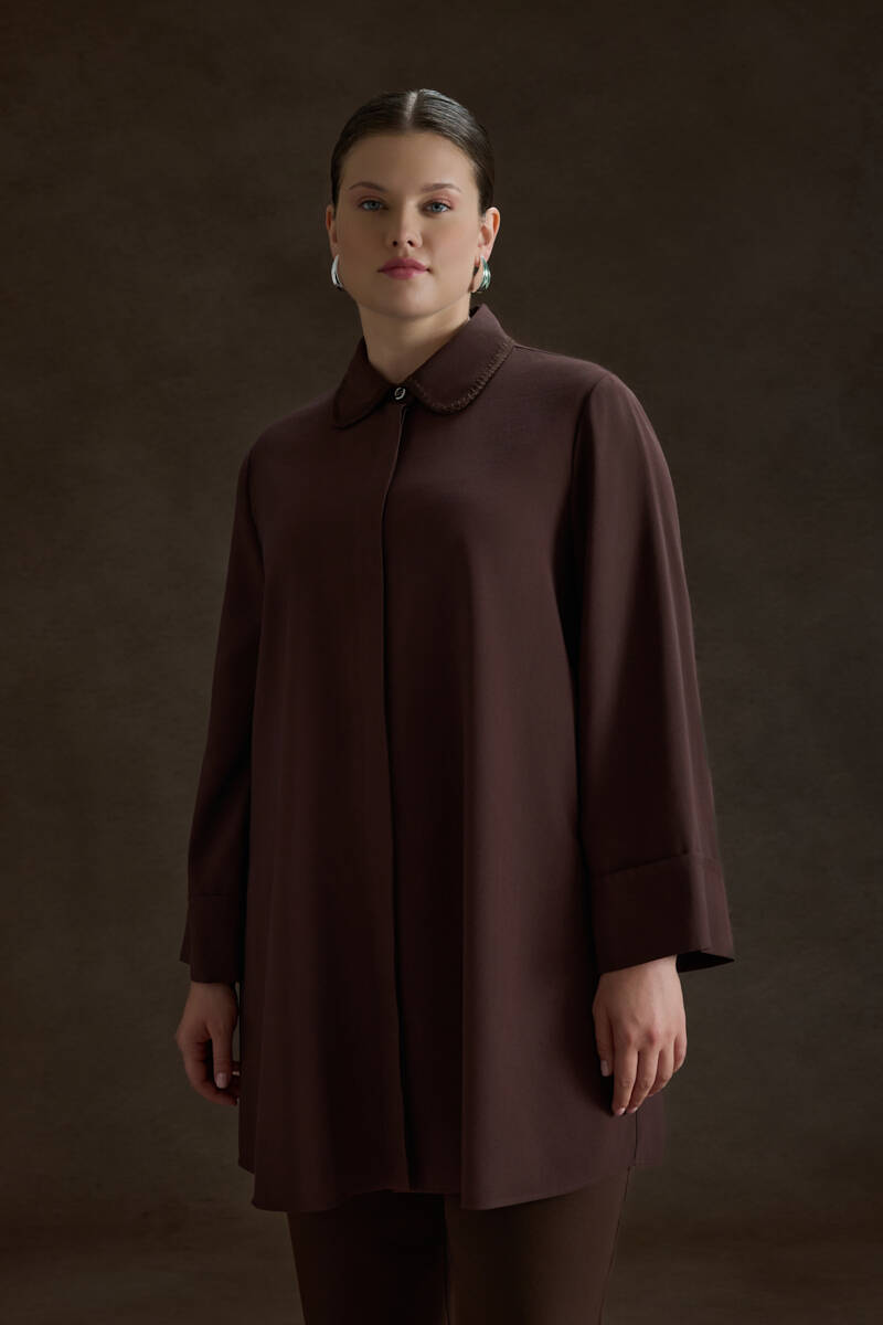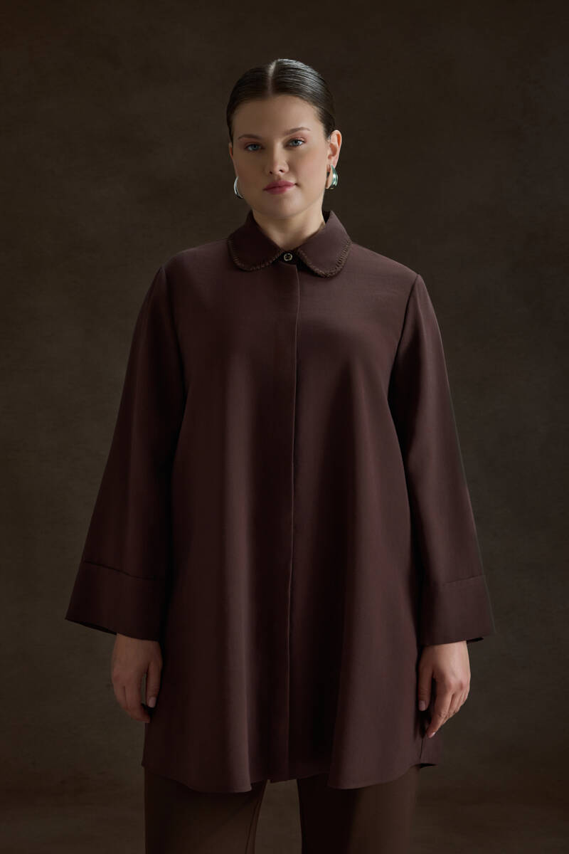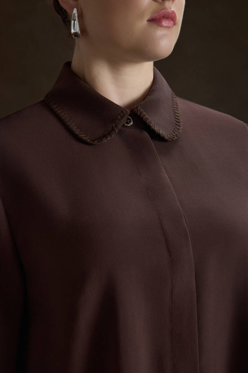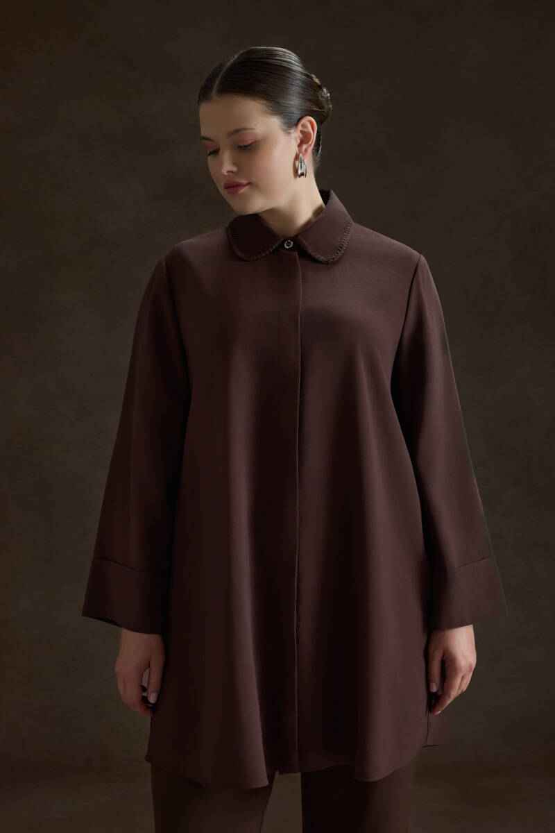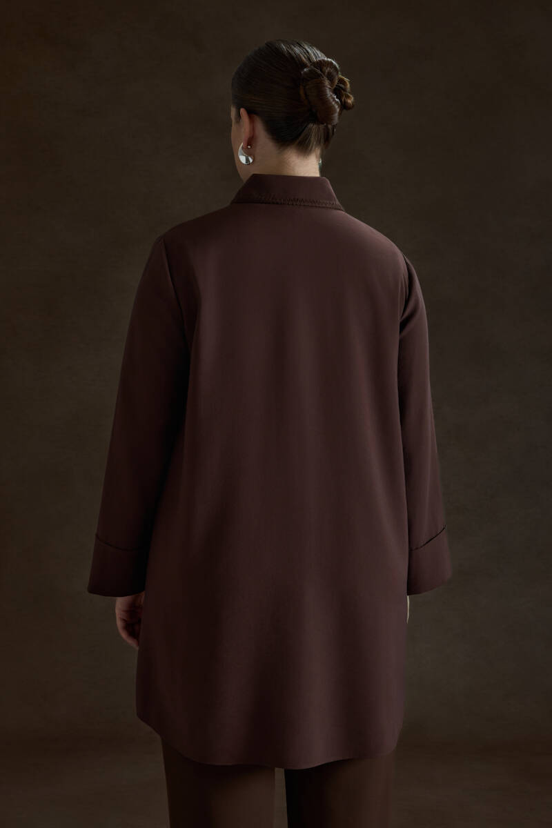 Kahverengi Çoban Dikişli Modal Tunik