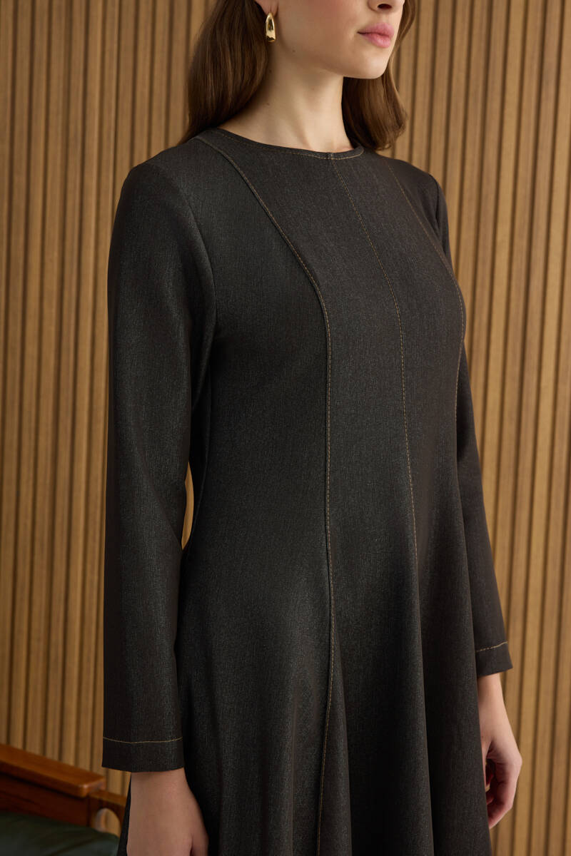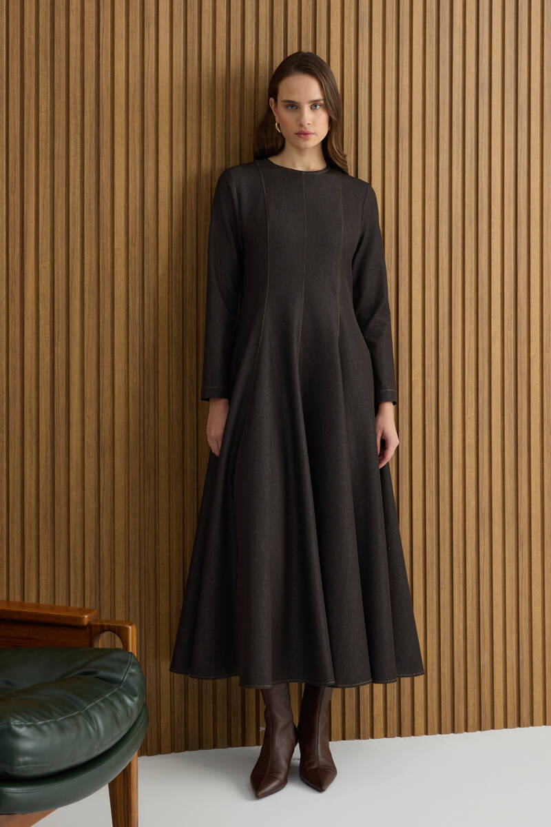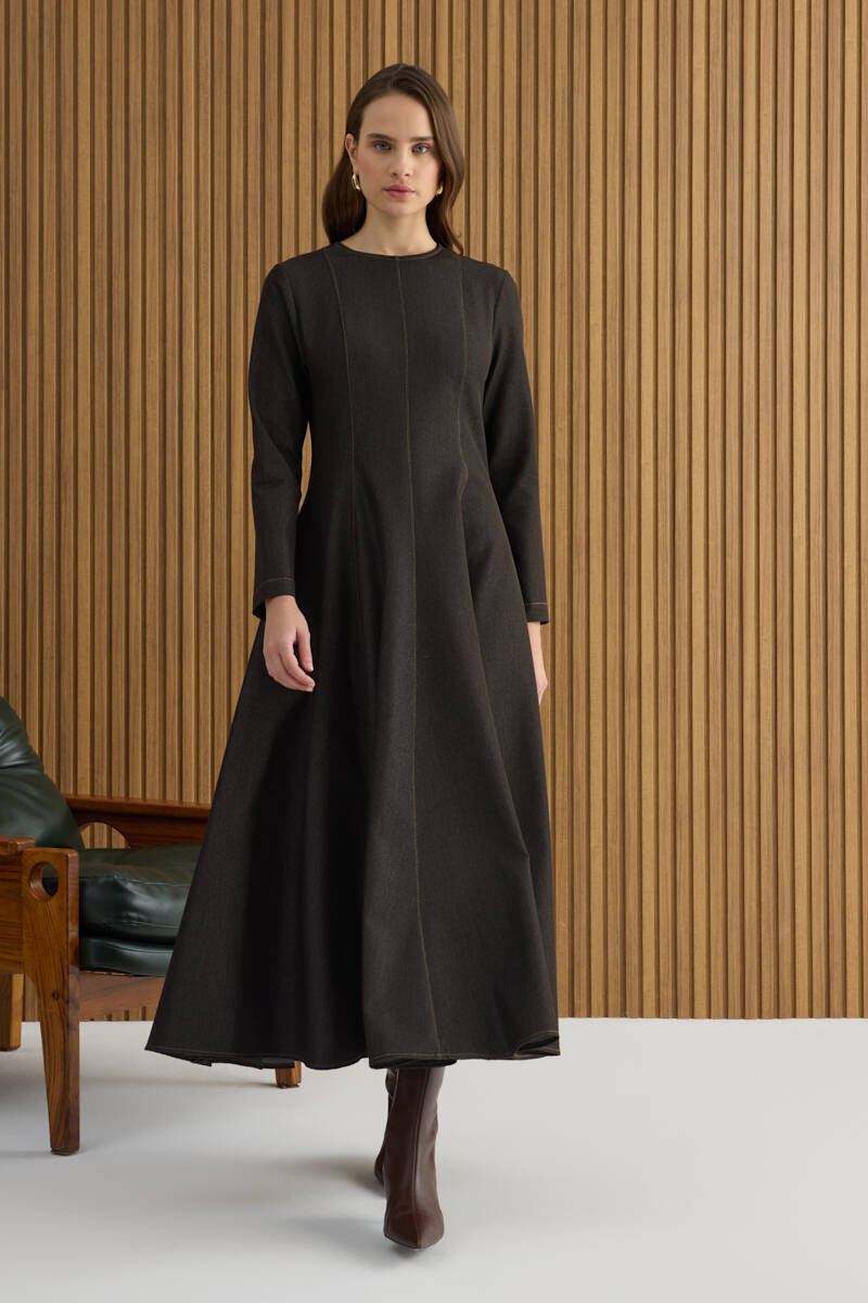 Kahverengi Denim Görünümlü Elbise