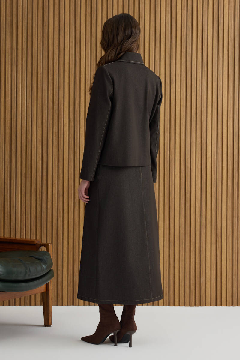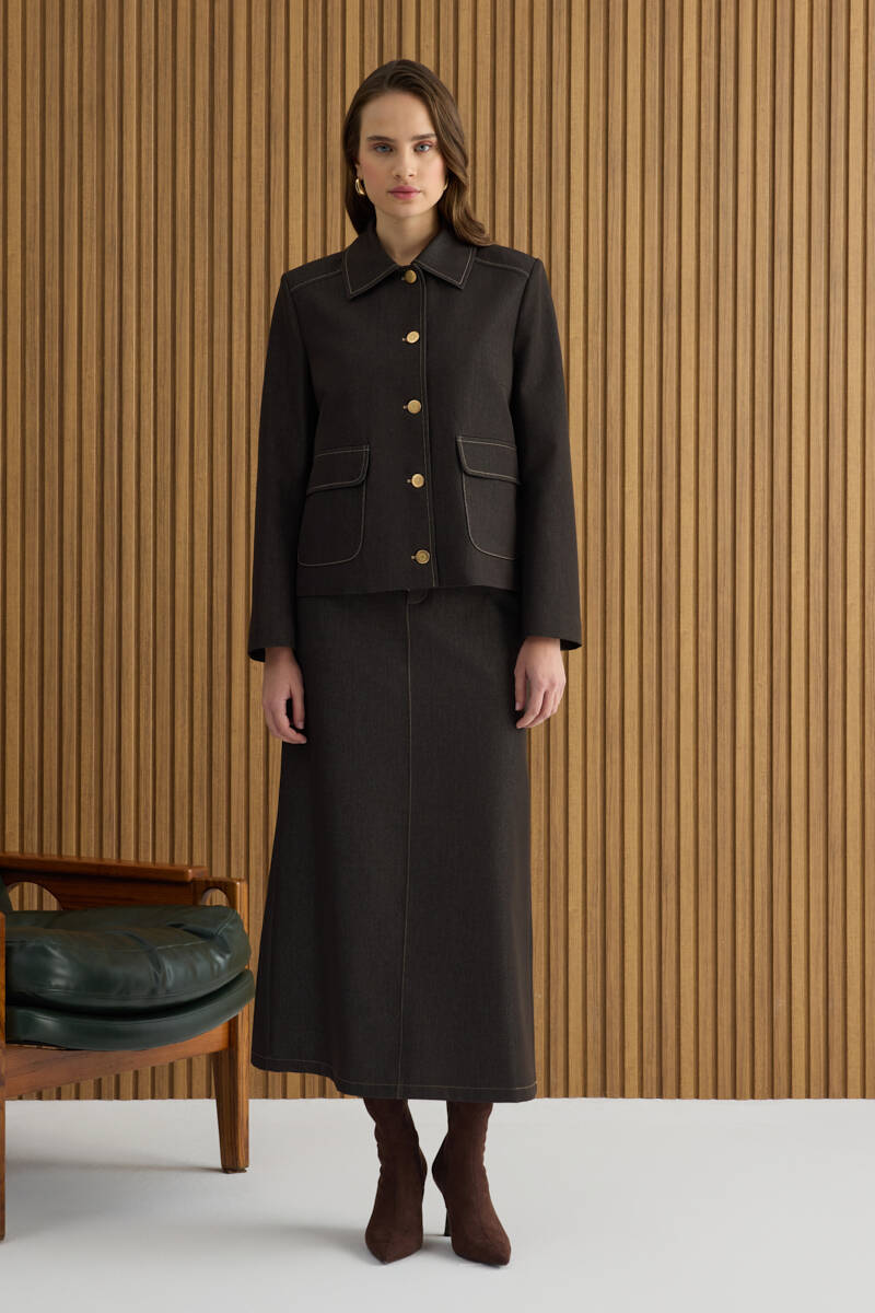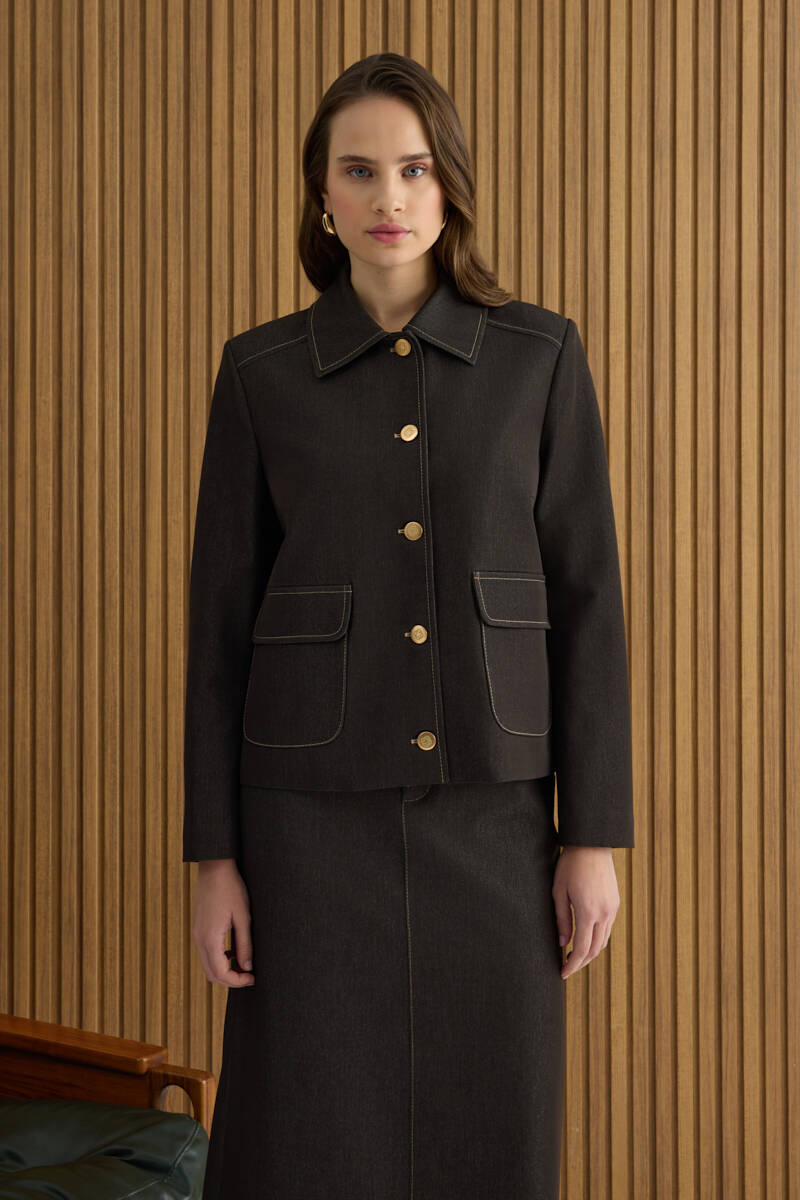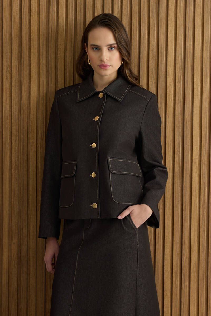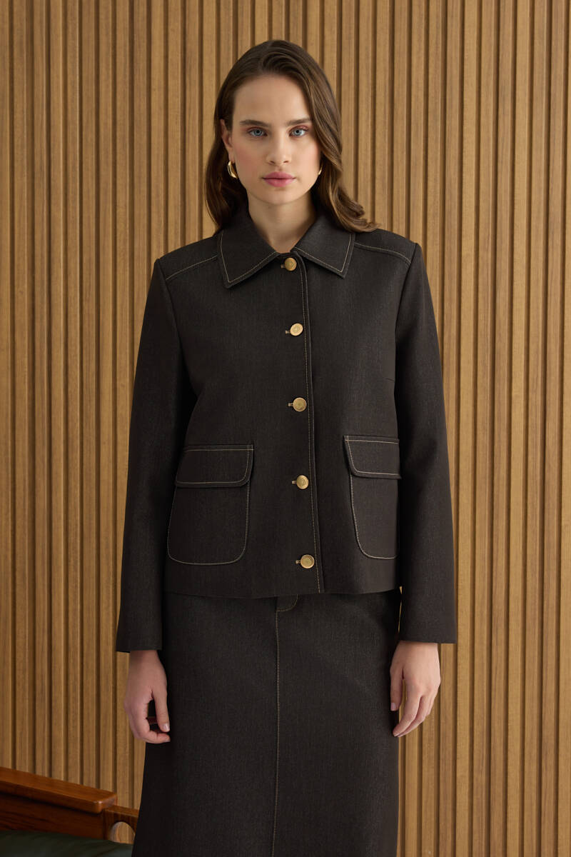 Siyah Taş Yapıştırmalı Dokuma Klasik Ceket