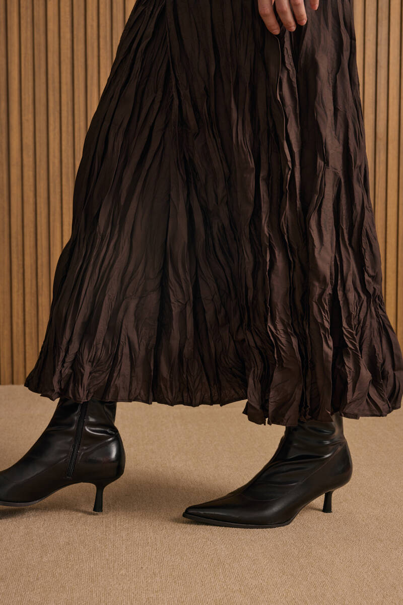 Siyah Kloş Yırtmaçllı Keten Etek