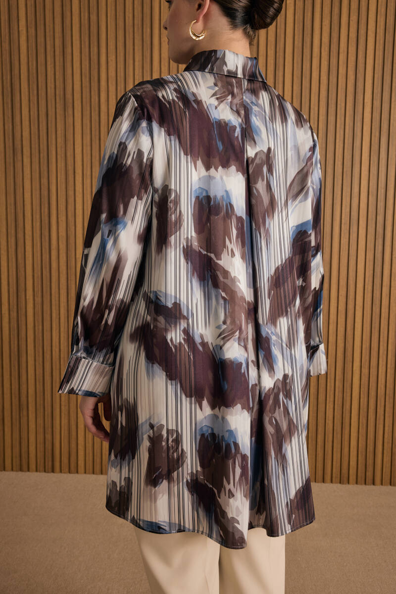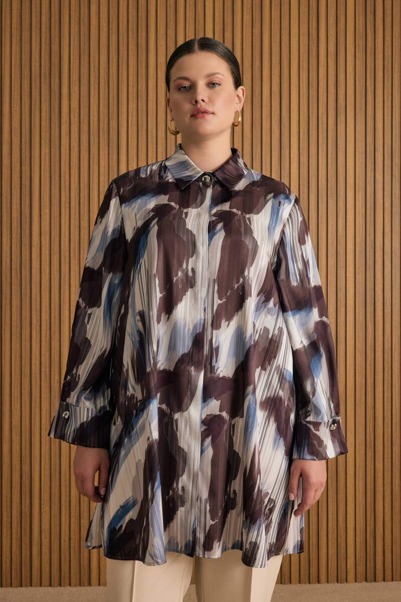 Kahverengi Yakası Fermuarlı Keten Tencel Tunik