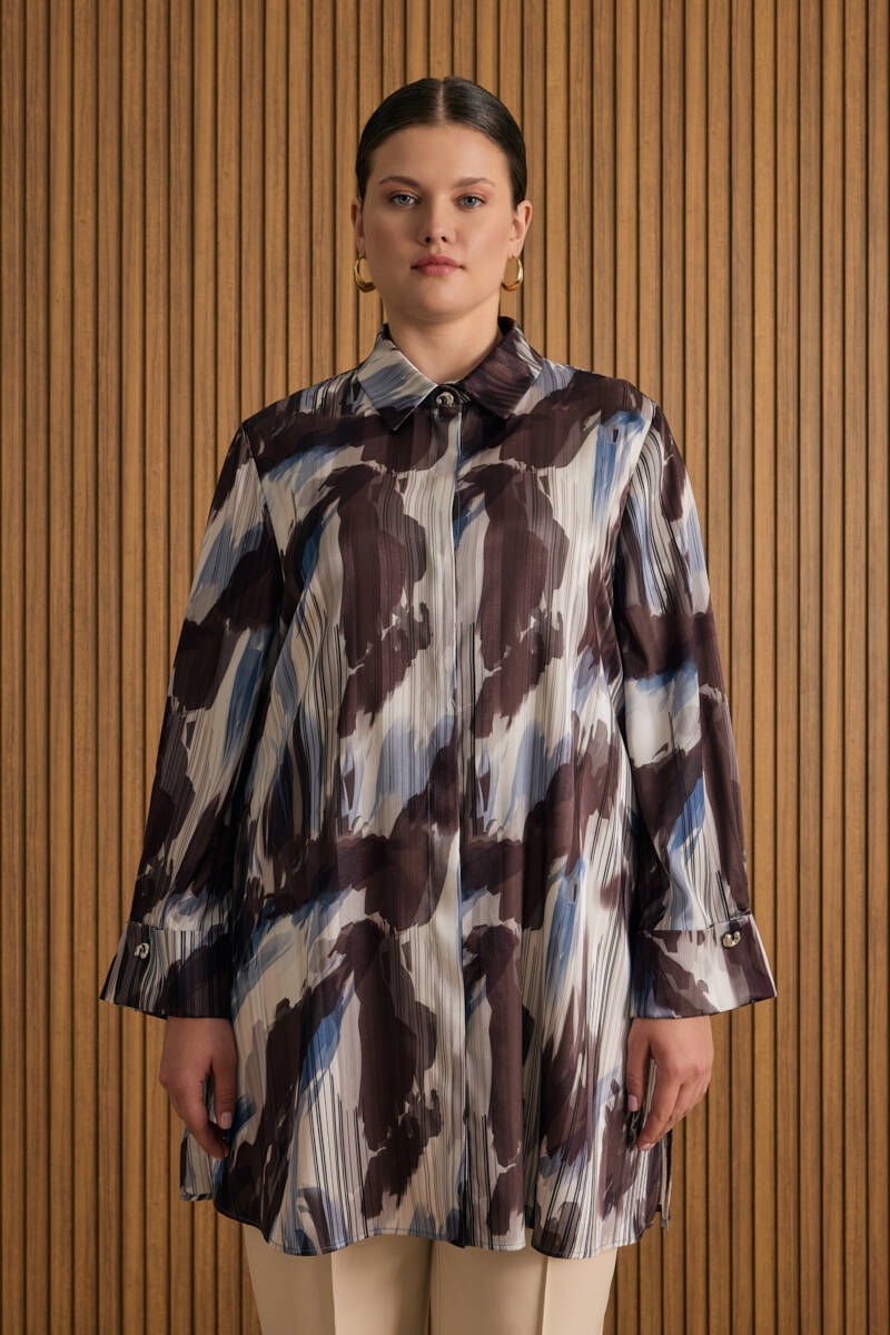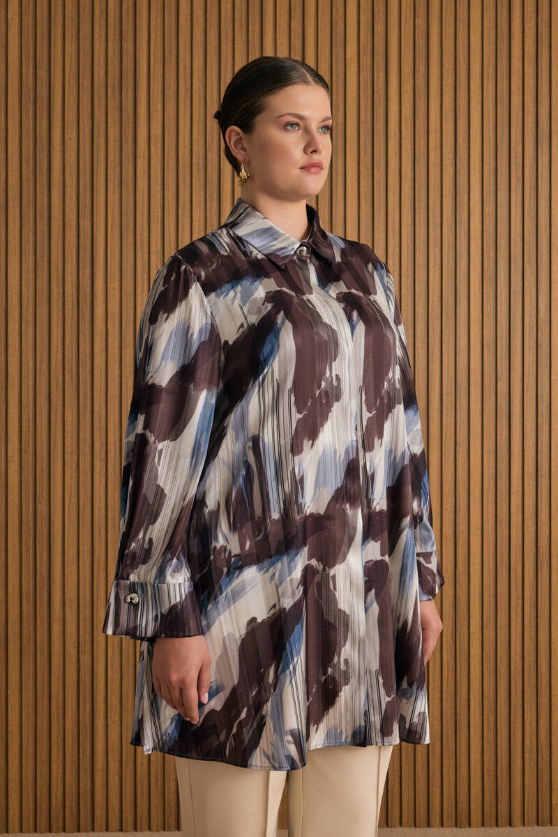 Bej Pano Çiçek Desenli Viscon Tunik