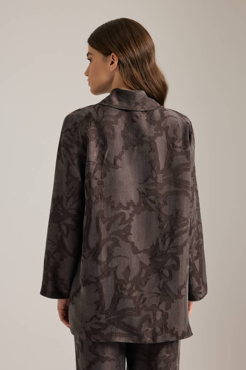 Kahverengi Dokulu Tencel Beli Lastikli Pijama Altı