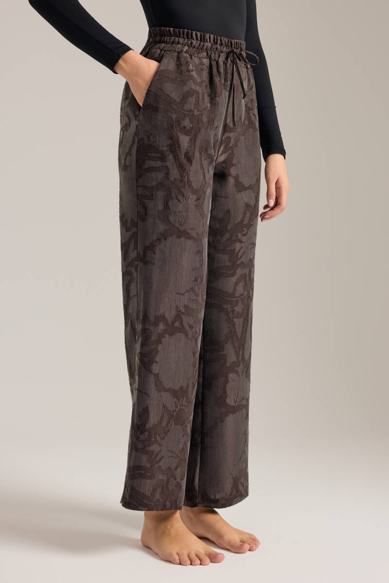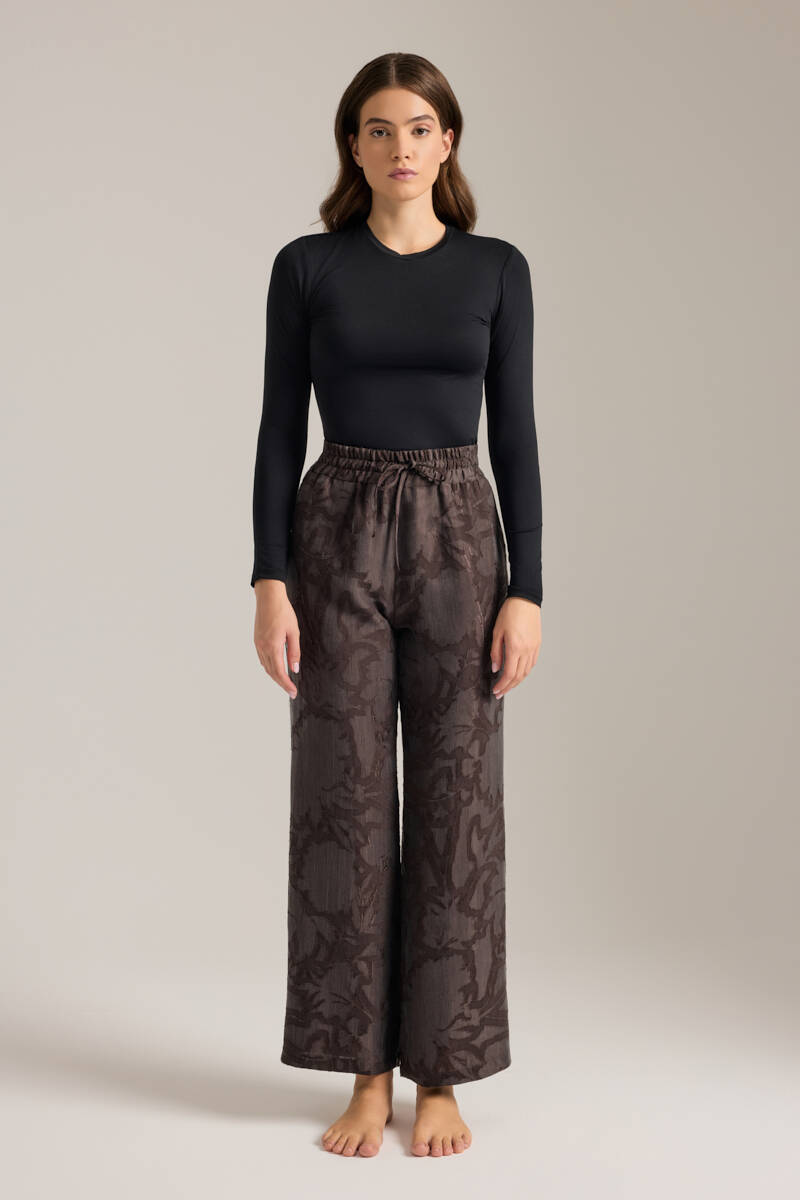 Kahverengi Beli Lastikli Viscon Cotton Pijama Altı