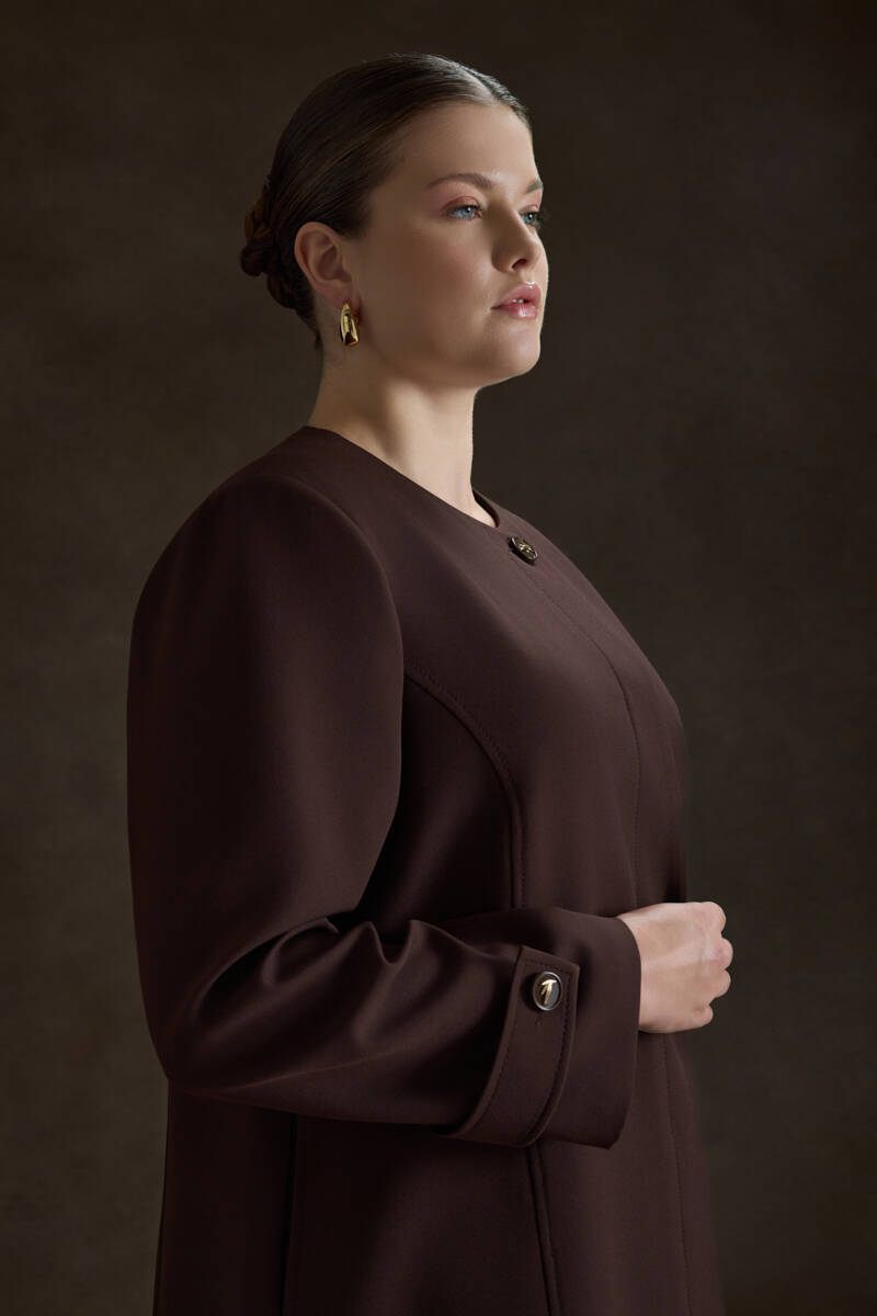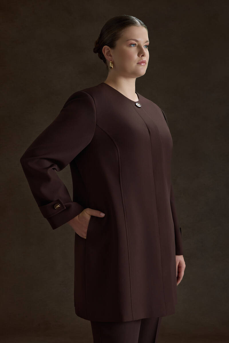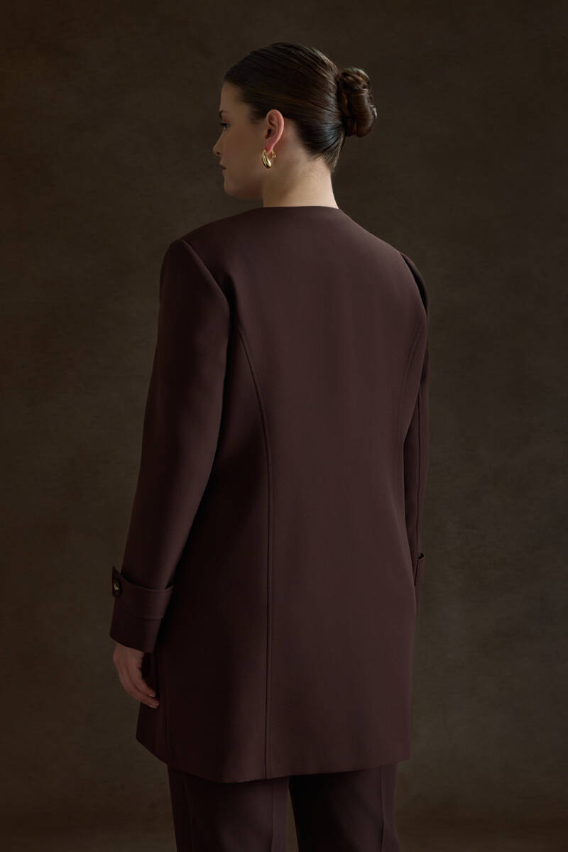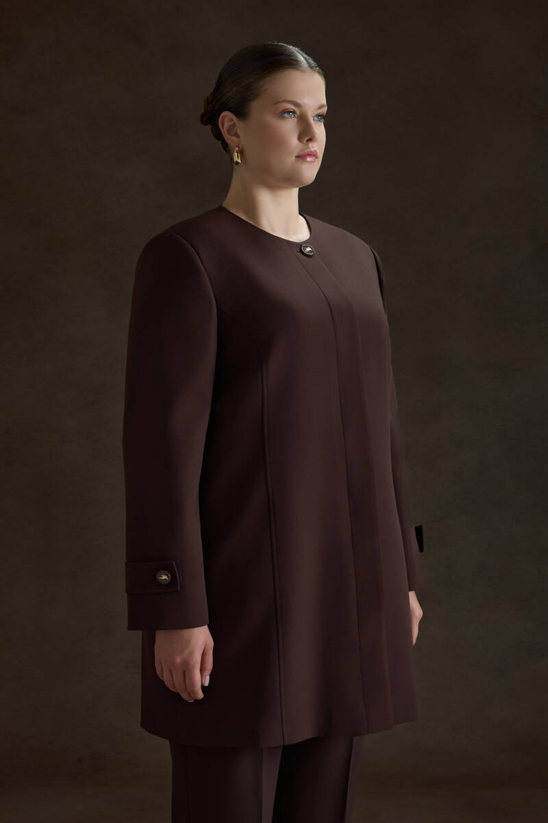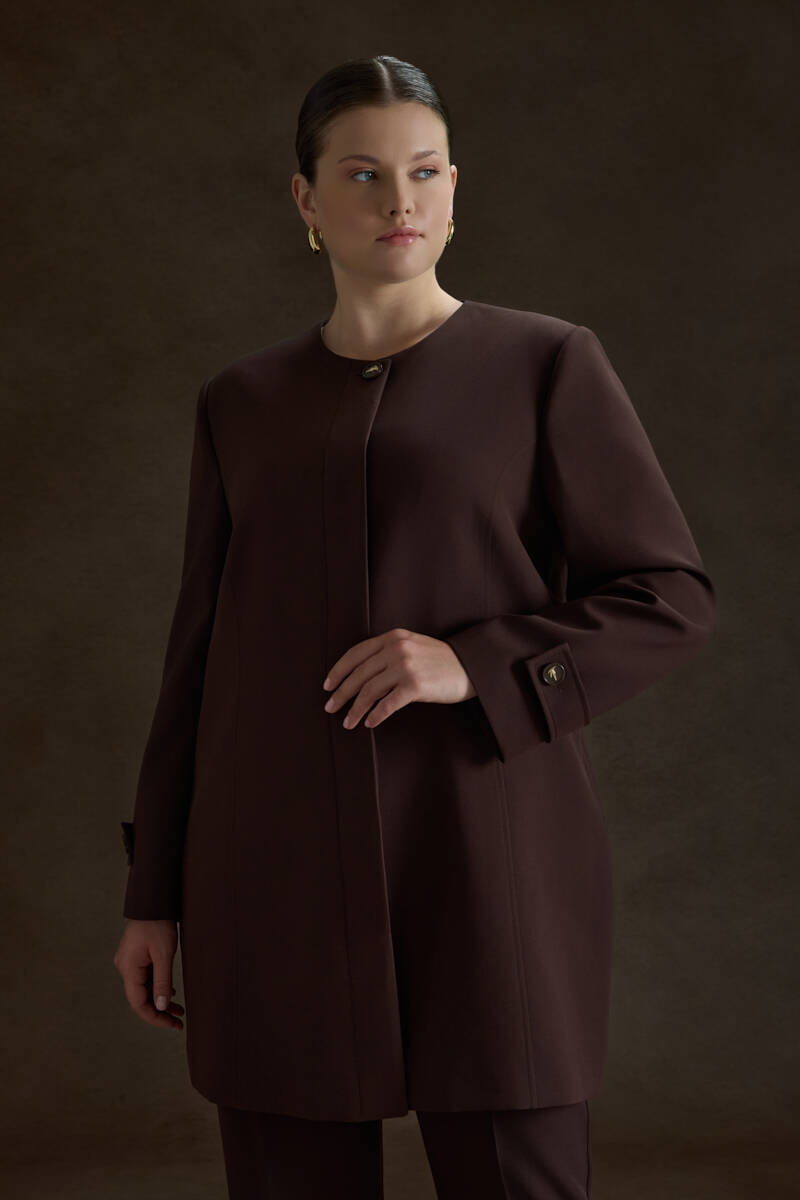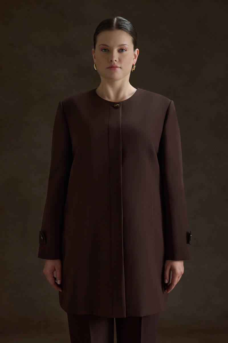 Ekru Yakası Taşlı Düğmeli Kap